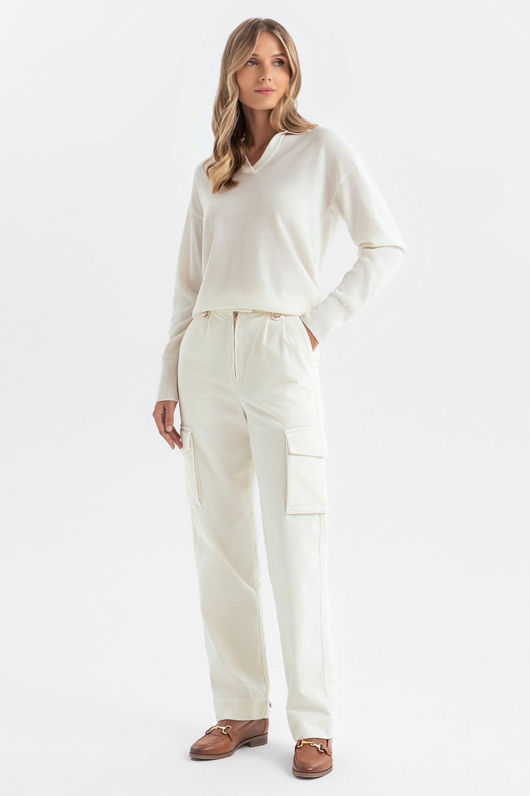 Брюки карго из вельвета, цвет молочный, цена 4 990 руб. - купить в интернет-магазине KANZLER