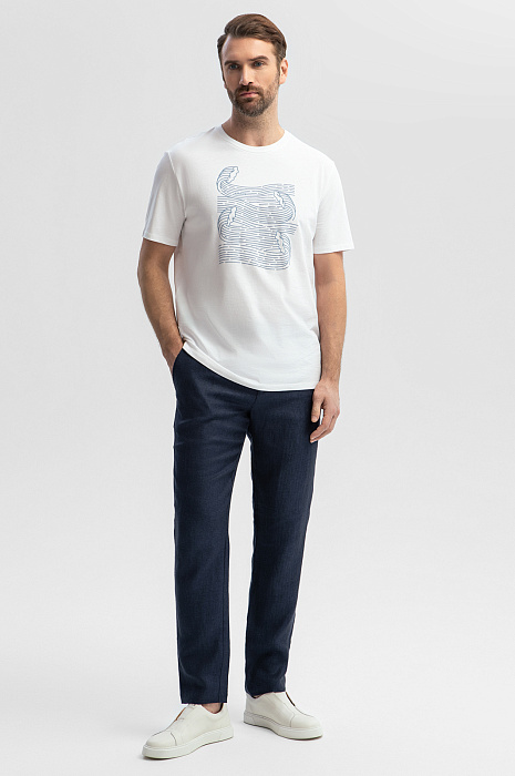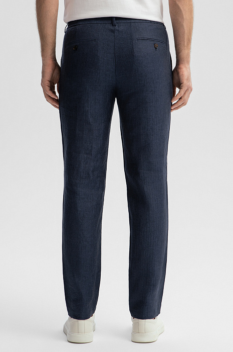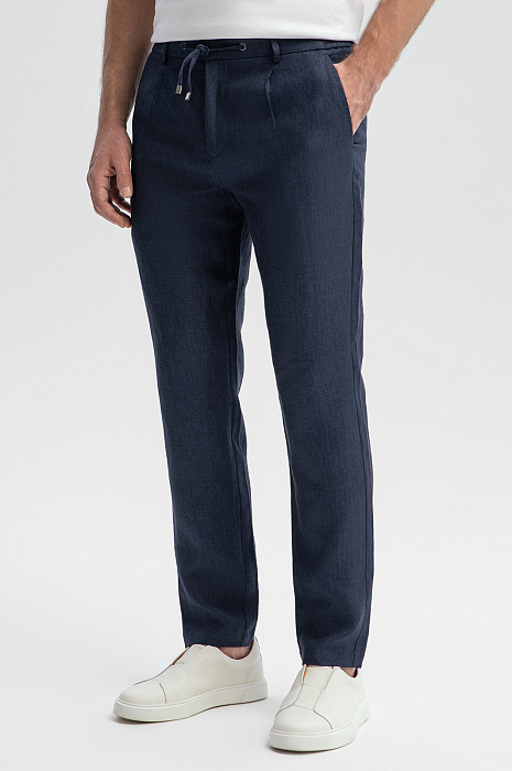 Брюки изо льна на кулиске, цвет синий, цена 10 392 руб., код 269075 - купить в Красноярске в интернет-магазине KANZLER