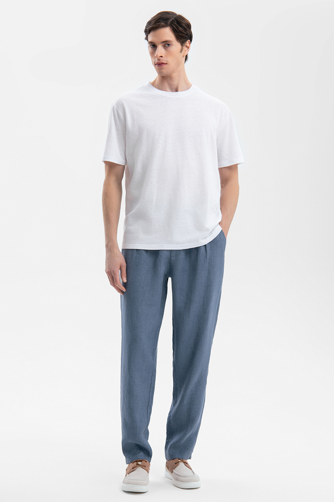 Серо-голубые брюки KANZLER привнесут в образ ощущение легкости и свободы. Материал – 100-процентный лен с благородной фактурой – обеспечивает идеальный микроклимат и дарит ощущение прохлады в жаркий день. Гигроскопичная ткань быстро впитывает влагу, оставляя кожу сухой. Серо-голубой оттенок сочетается как с пастельными, природными оттенками, так и с глубокими контрастными цветами. Дух свободы читается во всем – в крое, не стесняющем движений, в защипах, привносящих нотку расслабленности и обеспечивающих идеальную посадку, и в свежем оттенке, напоминающем утренний туман. Сочетайте их с белой льняной рубашкой и эспадрильями или дополните тонким джемпером и лоферами для более формального образа. Параметры модели: рост 189, 91-78-95 Размер на модели: 50