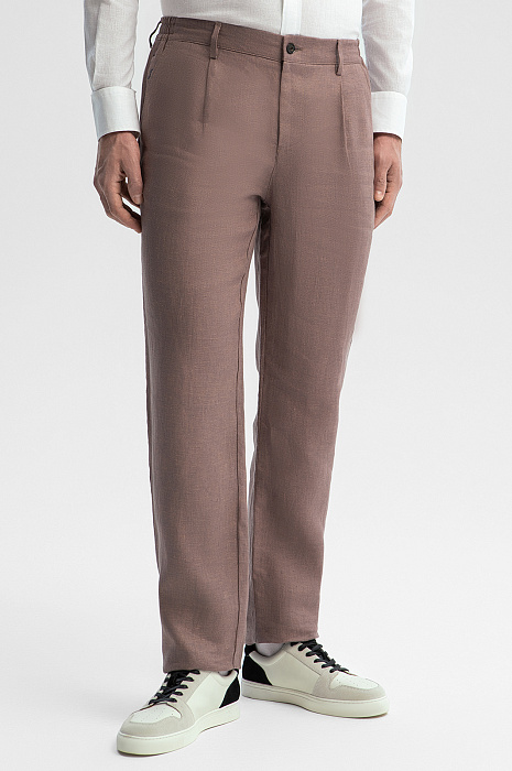 Брюки изо льна, цвет коричневый, цена 8 990 руб., код 269303 - купить в Красноярске в интернет-магазине KANZLER