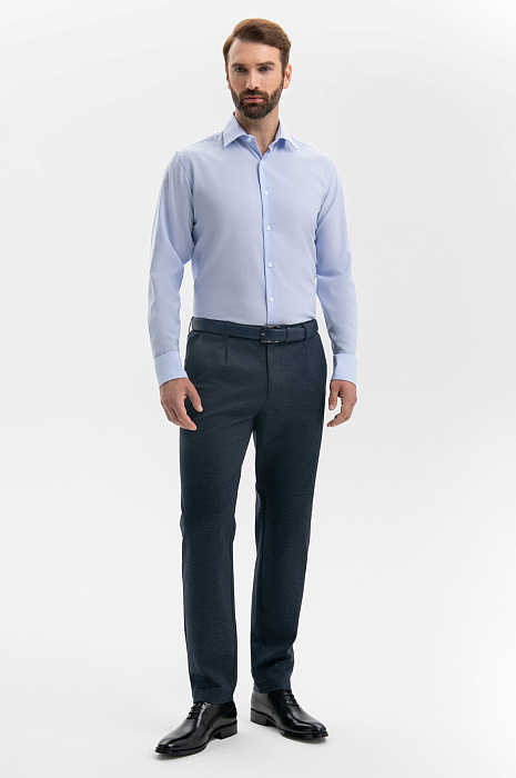 Элегантные и удобные серо-синие брюки KANZLER на кулиске — современная модель для офиса в стиле умный кежуал. Они удобны и выглядят по-деловому — современно, но без лишней строгости. Пояс с кулиской обеспечивает индивидуальную посадку и комфорт. Прилегающий крой подчёркивает силуэт и визуально вытягивает фигуру. Технологичный материал в микроклетку из прочных волокон (60% полиэстер, 36% район, 4% спандекс) неприхотлив в уходе, устойчив к загрязнению, хорошо держит форму, пропускает воздух и приятен на ощупь. Параметры модели: рост 189, 102-80-99 Размер на модели: 50