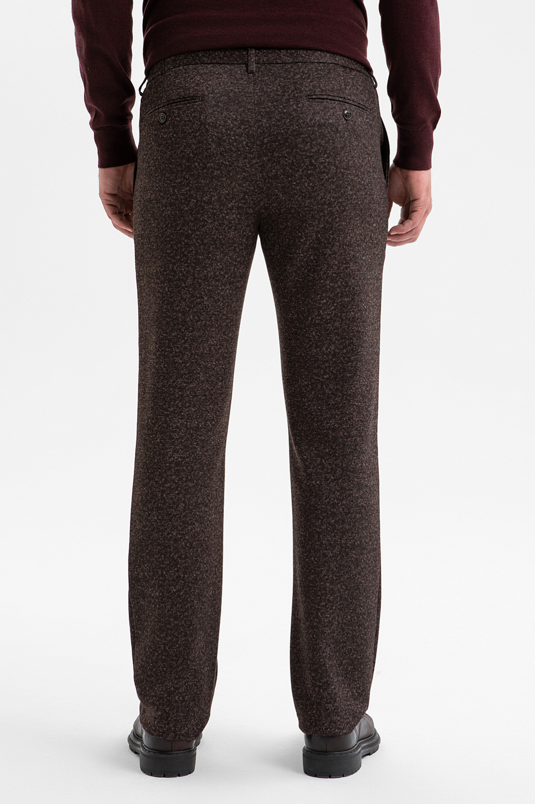 Брюки KANZLER на кулиске коричневого оттенка с меланжевым эффектом — идеальное сочетание современного силуэта и непринуждённого комфорта. Приталенный крой подчёркивает линии фигуры, создавая аккуратный современный образ, а регулируемая кулиска на поясе обеспечивает идеальную посадку. Меланжевый эффект добавляет ткани глубины и благородства. Инновационный материал, произведённый из современных синтетических и натуральных волокон, держит форму и адаптируется к индивидуальным особенностям фигуры. Благодаря добавлению хлопка ткань хорошо пропускает воздух и поддерживает приятную для тела температуру. Прочная гладкая подкладка из полиэстера и хлопка обеспечивает комфорт при надевании. Параметры модели: рост 189, 102-80-99 Размер на модели: 50