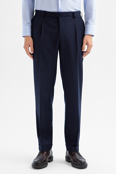 Брюки из шерсти и кашемира с водоотталкивающей обработкой, лимитированная коллекция, цвет синий, цена 14 990 руб., код 270084 - купить в Красноярске в интернет-магазине KANZLER
