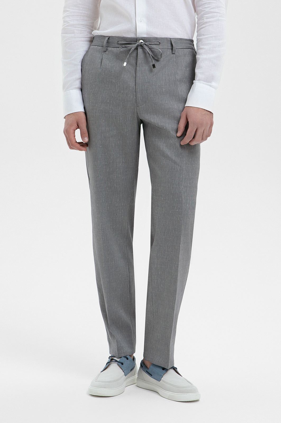 Брюки из шерсти, льна и шелка, цвет серый, цена 17 990 руб., код 271038 - купить в Красноярске в интернет-магазине KANZLER