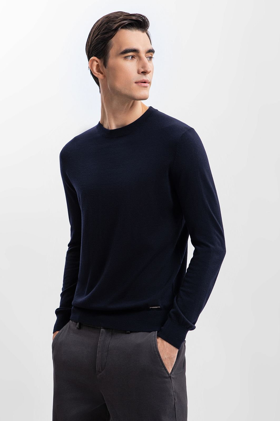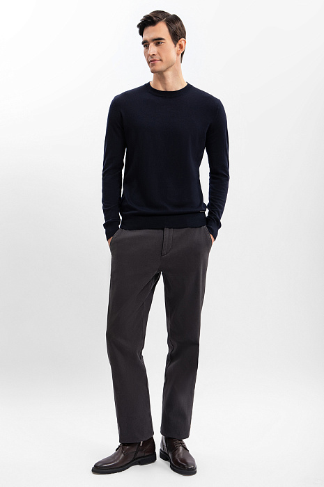 Роскошный джемпер KANZLER с круглым вырезом из шерсти с кашемиром — основа образов в стиле кежуал, умный кежуал и спорт. Отличную посадку и прилегание обеспечивают мягкие трикотажные резинки на рукавах и по нижнему краю. Благородный натуральный материал бережет тепло тела и защищает от температурных перепадов — в джемпере комфортно находится на улице и в офисе. Упругие волокна шерсти не дают ткани сминаться. Ценный кашемир придает материалу нежность и мягкость. Параметры модели: рост 192, 101-76-97 Размер на модели: M