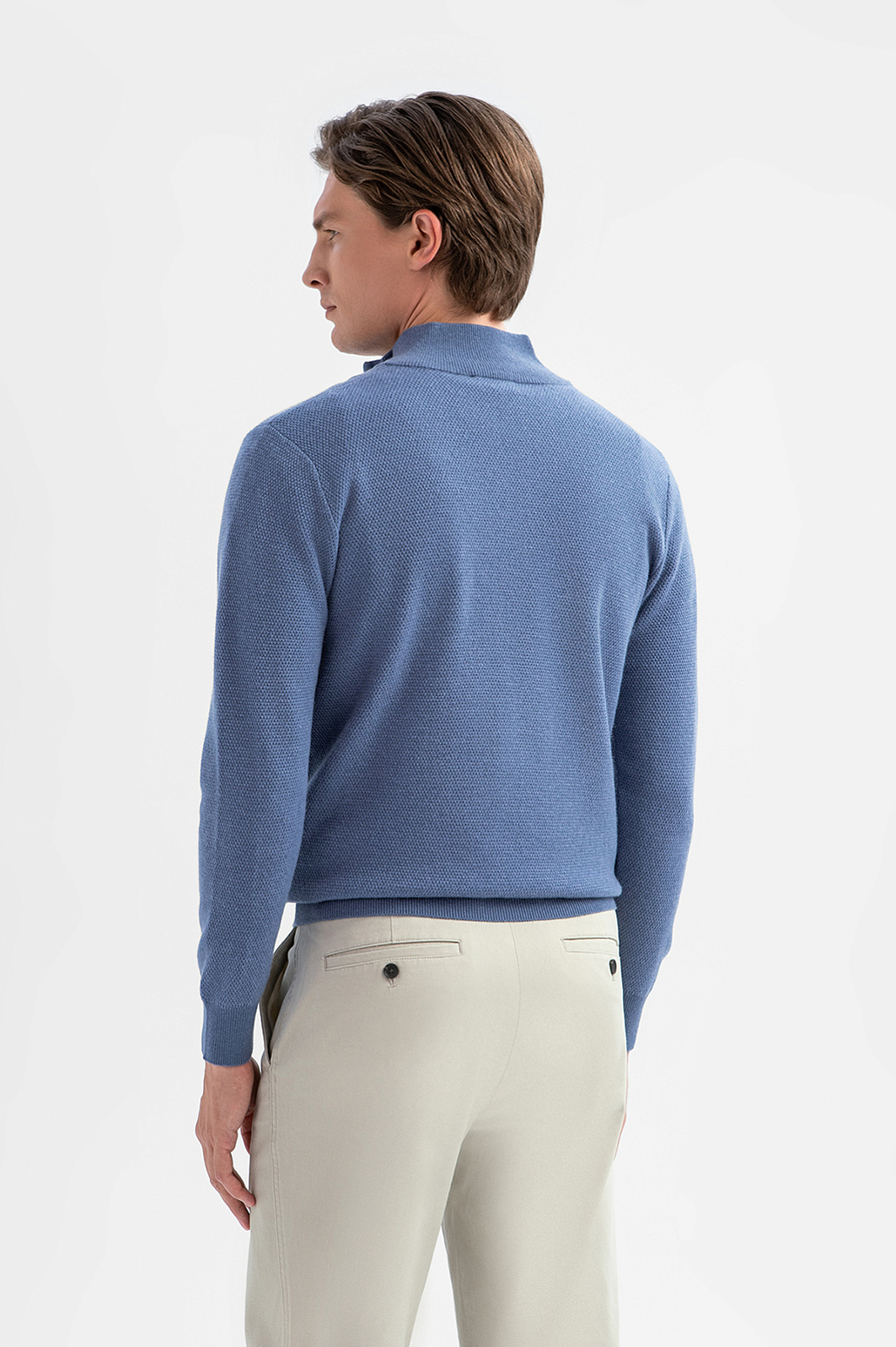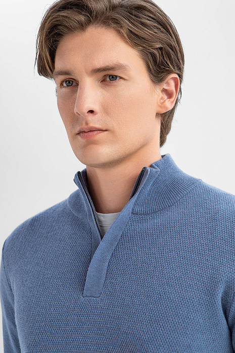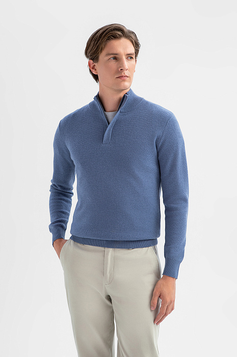 Джемпер KANZLER в небесно-голубом оттенке сочетает в себе элегантность делового стиля с непринужденностью повседневного образа. Воротник-стойка на молнии, скрытой планкой, сохранит тепло в ветреный день, не жертвуя стилем. Сочетание натуральных волокон шерсти (90%) и драгоценного кашемира (10%) создает мягкий материал, практичный, долговечный, обеспечивающий воздухообмен и тепло, не перегревая тело. Голубой оттенок, напоминающий цвет ясного неба, придает образу свежесть и подчеркивает индивидуальность. Параметры модели: рост 191, 97-77-99 Размер на модели: M