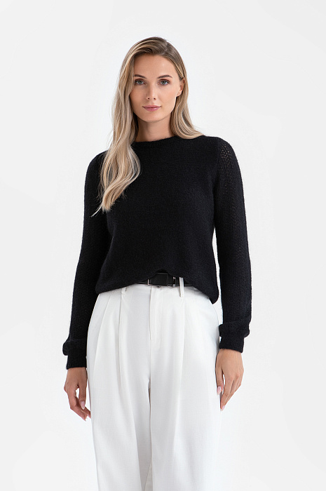 Джемпер из шелка, мохера и шерсти альпаки, цвет черный, цена 8 990 руб. - купить в интернет-магазине KANZLER