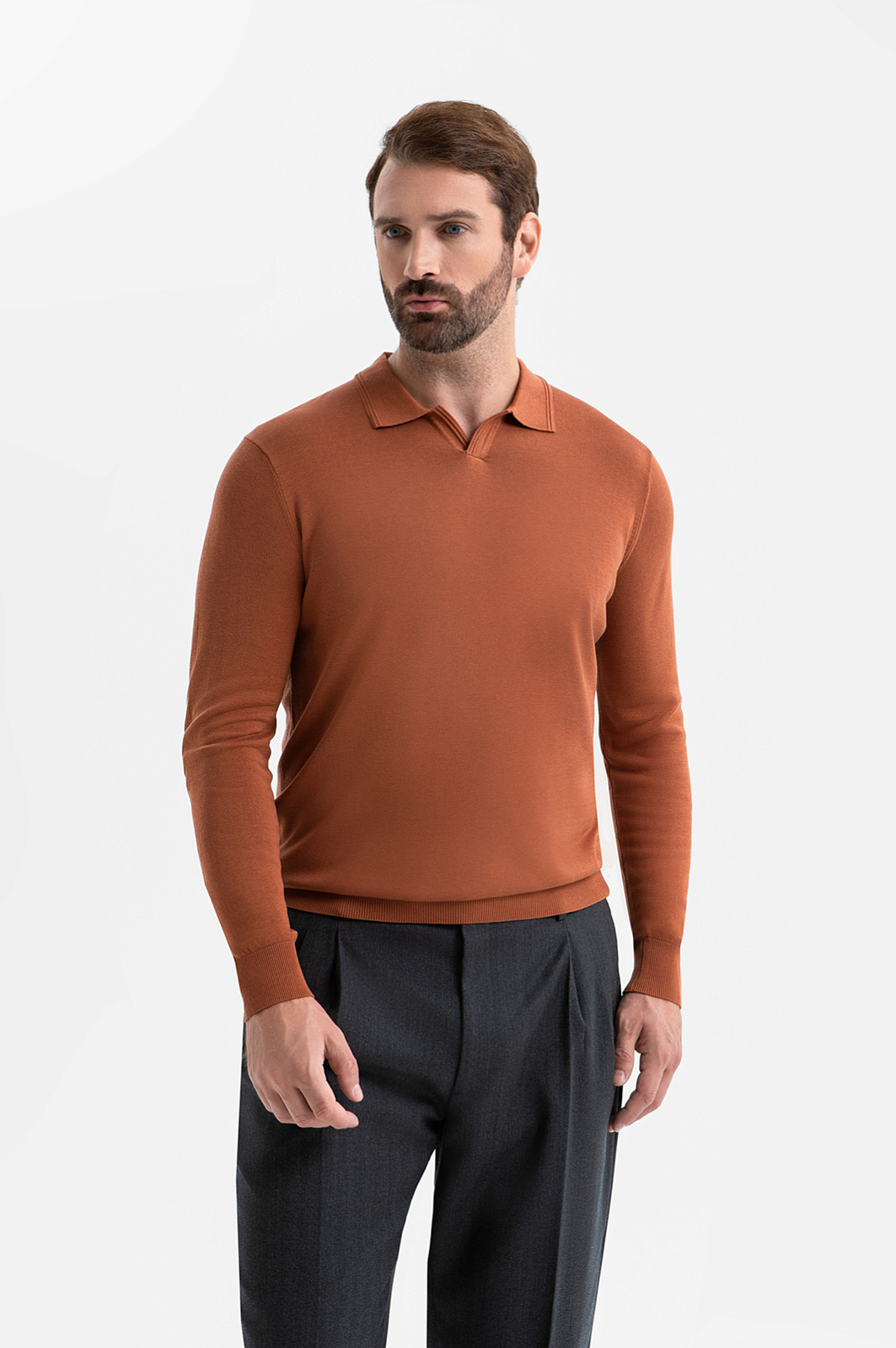 Джемпер поло из шелка, лимитированная коллекция, цвет коричневый, цена 7 990 руб., код 270226 - купить в Красноярске в интернет-магазине KANZLER