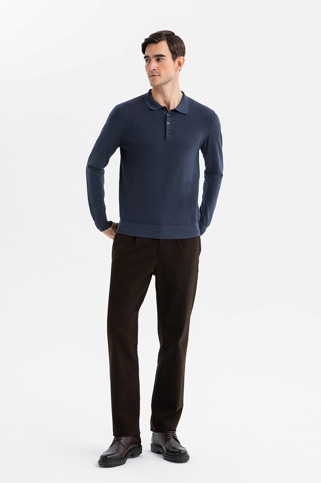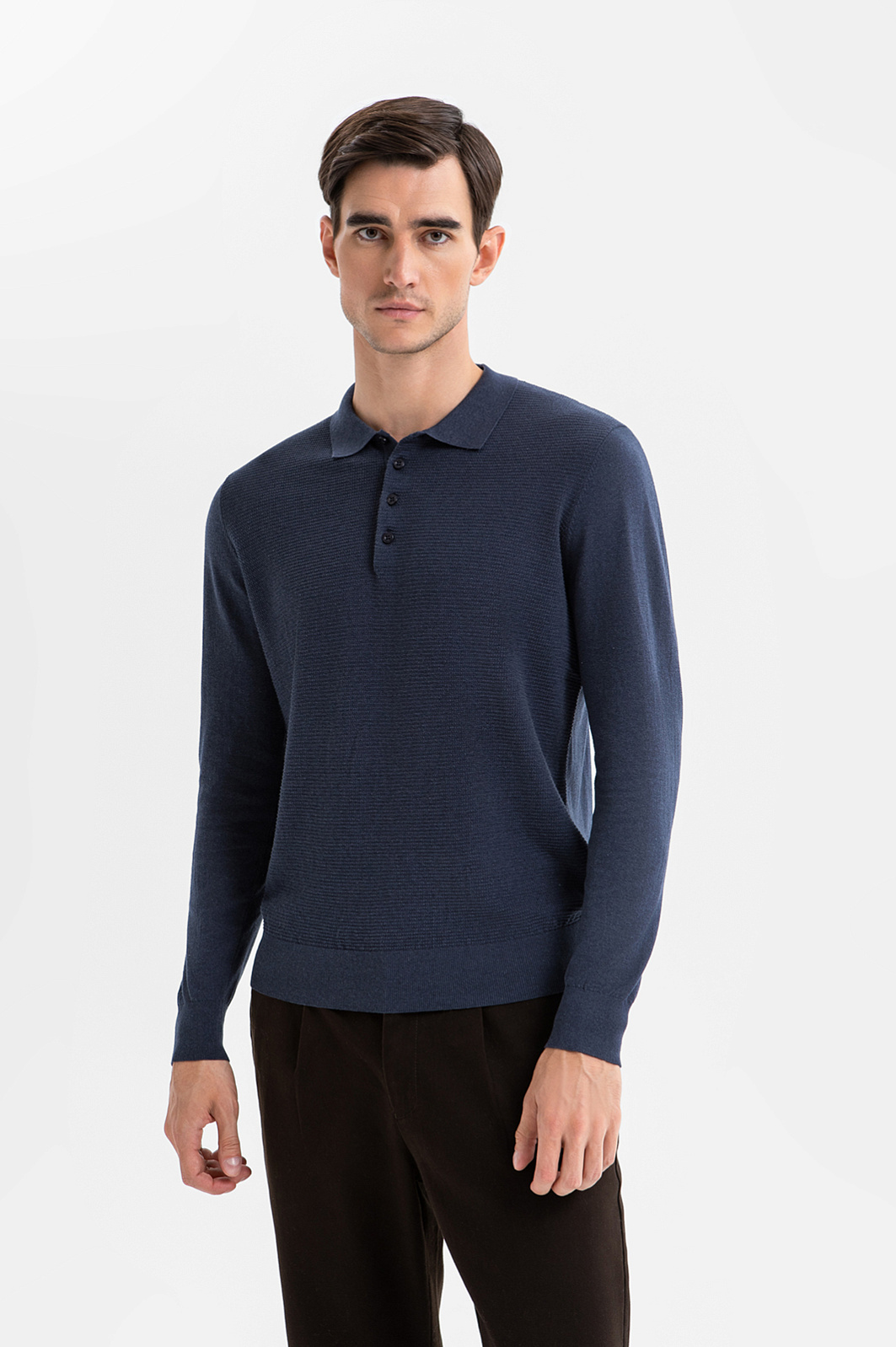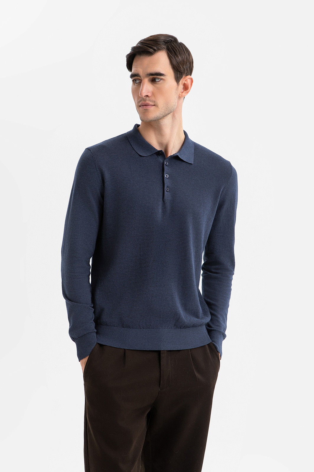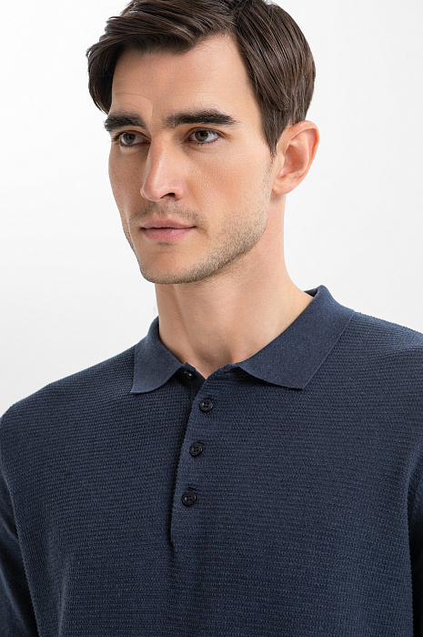Джемпер поло из хлопка Пима, цвет синий, цена 6 990 руб., код 270233 - купить в Красноярске в интернет-магазине KANZLER