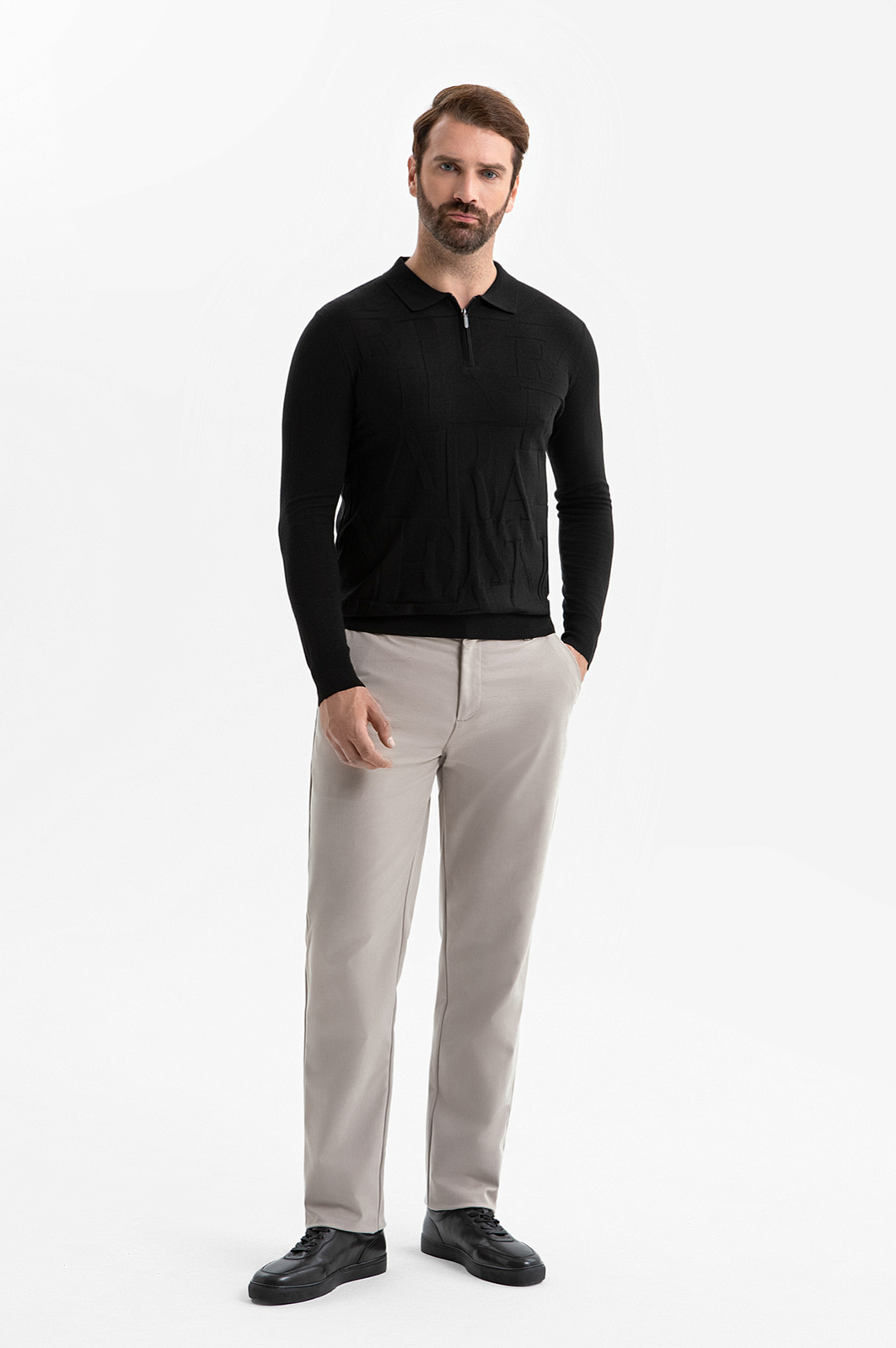 Роскошный джемпер поло KANZLER из шерсти с добавлением шёлка —выбор мужчины, который ценит удобство спортивной классики и премиальное качество материалов. Чёрный цвет подчёркивает графичность силуэта. Передняя часть украшена неброским буквенным принтом, который добавляет вещи индивидуальности, оставаясь при этом сдержанным и лаконичным. Традиционный крой с аккуратным воротником-поло придаёт джемперу универсальность: такой джемпер легко вписывается как в неформальный деловой гардероб, так и в повседневные образы для прогулок и путешествий. Трикотаж из 90% шерсти и 10% шёлка сочетает тепло и практичность с изысканной лёгкостью. Шерсть обеспечивает отличную терморегуляцию и комфорт в прохладную погоду, а шёлк придаёт ткани мягкий блеск и гладкость. Параметры модели: рост 189, 102-80-99 Размер на модели: M