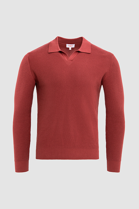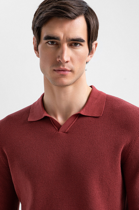 Поло KANZLER с длинным рукавом из чистого хлопка в кирпично-коричневом оттенке отражает современное понимание элегантности и комфорта. Тёплый, глубокий цвет придаёт образу выразительность и благородство, легко сочетаясь как с классическими, так и с более расслабленными элементами гардероба. Неглубокий треугольный вырез горловины придаёт модели спортивный характер. Длинный рукав делает поло уместным в межсезонье и прохладные дни. Фактурное трикотажное полотно создаёт визуальную глубину и тактильную выразительность. Гипоаллергенные воздухопроницаемые волокна хлопка берегут естественное тепло тела и поддерживают свежесть.