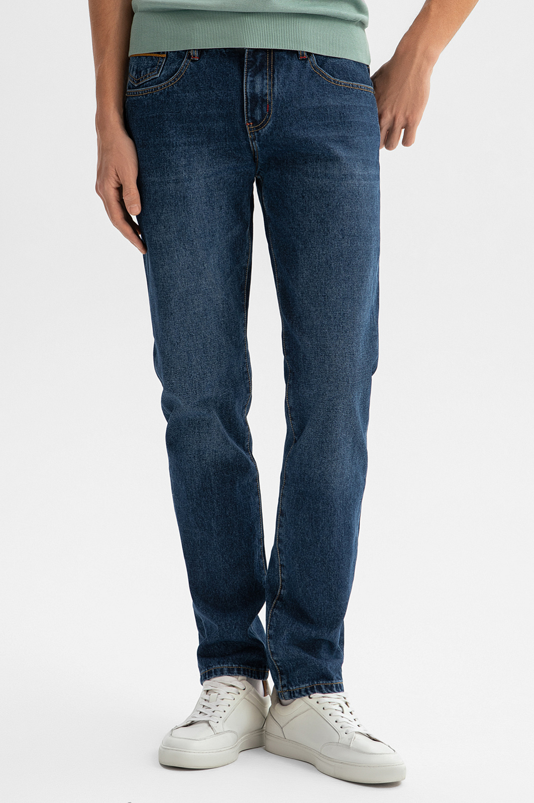 Синие прямые джинсы KANZLER с легким эффектом выгорания и потертости по линиям сгибов — вневременная классика. Они отлично подходят для отдыха и офиса с нестрогим дресс-кодом. Чтобы добавить образу деловитости, достаточно надеть с джинсами пиджак. Трикотажный верх, наоборот, придаст образу расслабленность. Модель классического силуэта и прямого кроя с традиционными пятью карманами хорошо садится на любой тип фигуры. Качественный плотный деним сделан из гипоаллергенного дышащего хлопка (80%) с добавлением волокон полиэстера и вискозы, которые повышают прочность и износоустойчивость ткани. Параметры модели: рост 191, 97-77-99 Размер на модели: 34