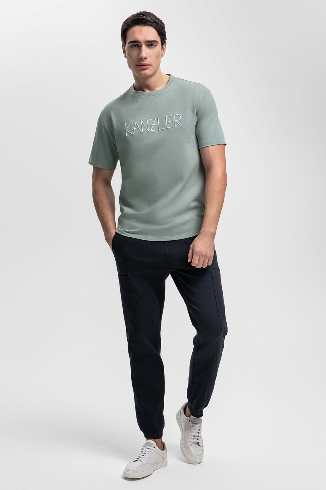 Нежный мятный оттенок футболки KANZLER освежает образ, добавляя нотку шика и создавая безмятежное настроение. Фактурный материал из 100% хлопка обеспечивает комфорт и воздухопроницаемость и приятно ощущается на коже. Свободный Свободный крой гарантирует свободу движений и создает непринужденный расслабленный силуэт. Принадлежность бренду отмечена логотипом на груди. Это базовый элемент гардероба, который гармонично дополнит повседневные образы в стиле кежуал с джинсами или брюками. Параметры модели: рост 190, 103-83-99 Размер на модели: M