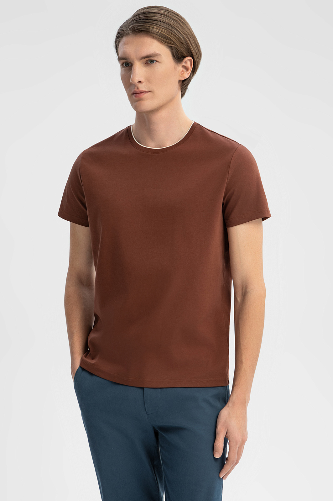 Футболка из мерсеризованного хлопка, цвет коричневый, цена 5 990 руб., код 269164 - купить в Красноярске в интернет-магазине KANZLER