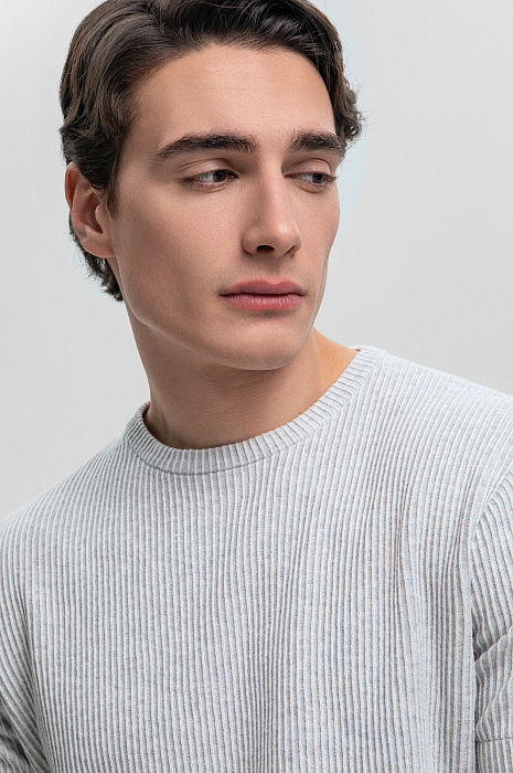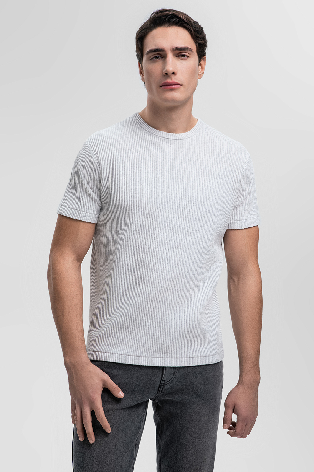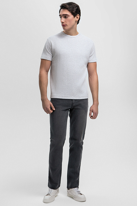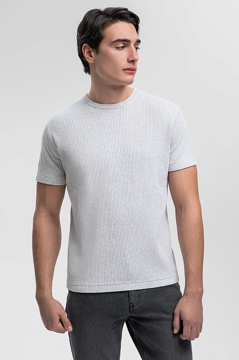 Футболка из хлопка в рубчик, цвет серый, цена 4 990 руб., код 269168 - купить в Красноярске в интернет-магазине KANZLER