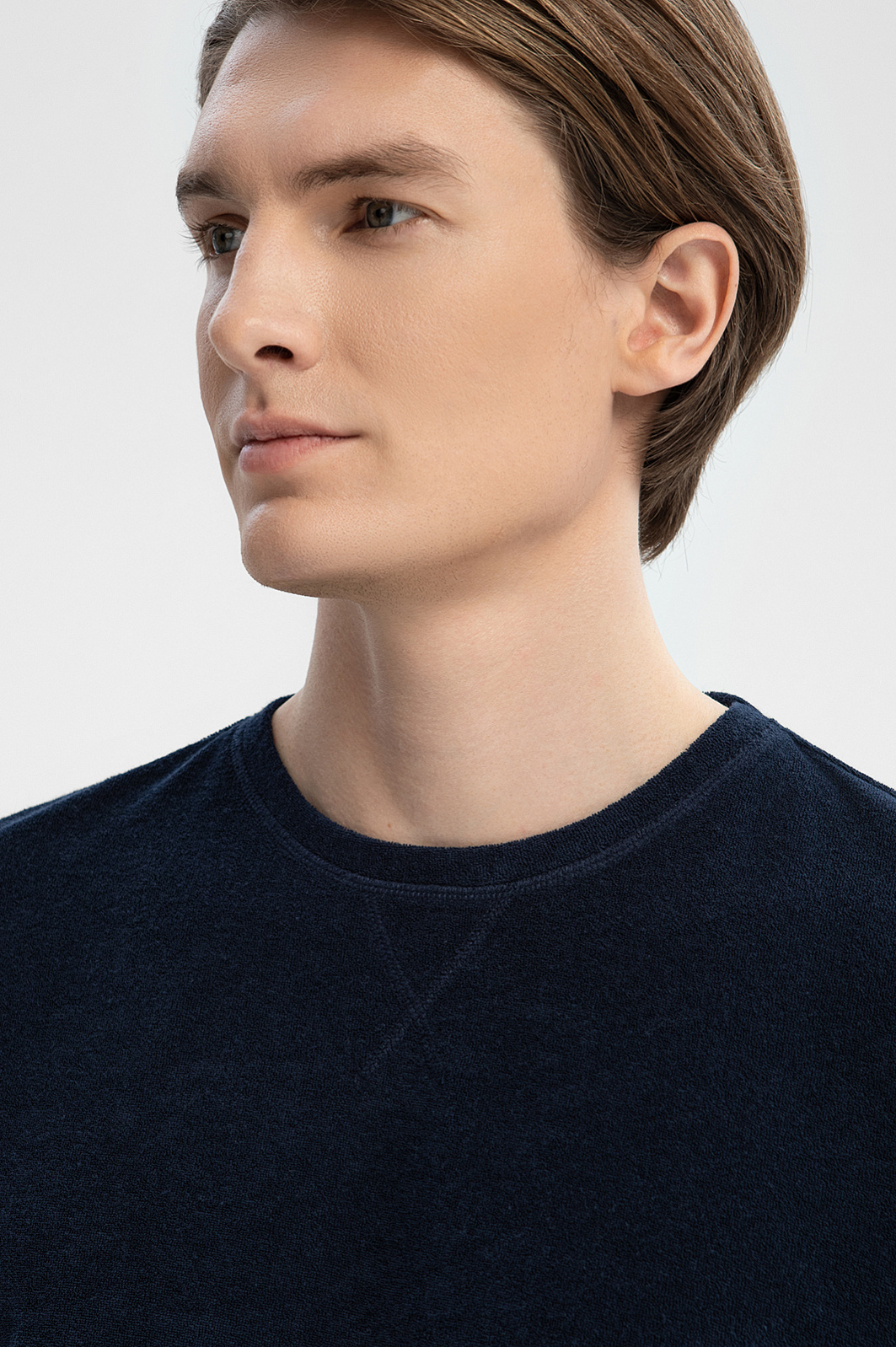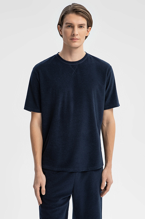 Футболка KANZLER в темно-синем оттенке воплощает в себе все, что можно ожидать от комфортной одежды для дома. В основе материала с мягкой ворсистой фактурой – гипоаллергенный хлопок, обеспечивающий воздухопроницаемость и нежное соприкосновение с кожей. Волокна полиэстера служат повышенной прочности, гладкости и сохранению формы. Свободный крой гарантирует комфорт в течение всего дня, чему бы вы его не посвятили. Модель можно дополнить брюками из домашней коллекции KANZLER.