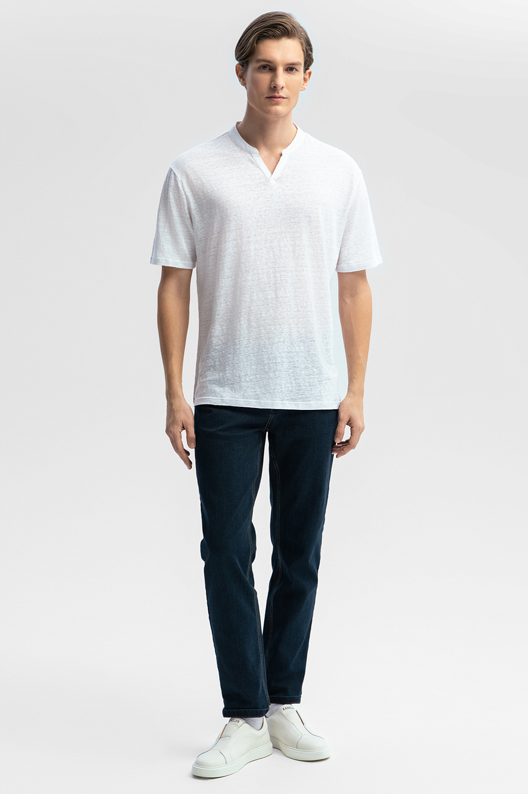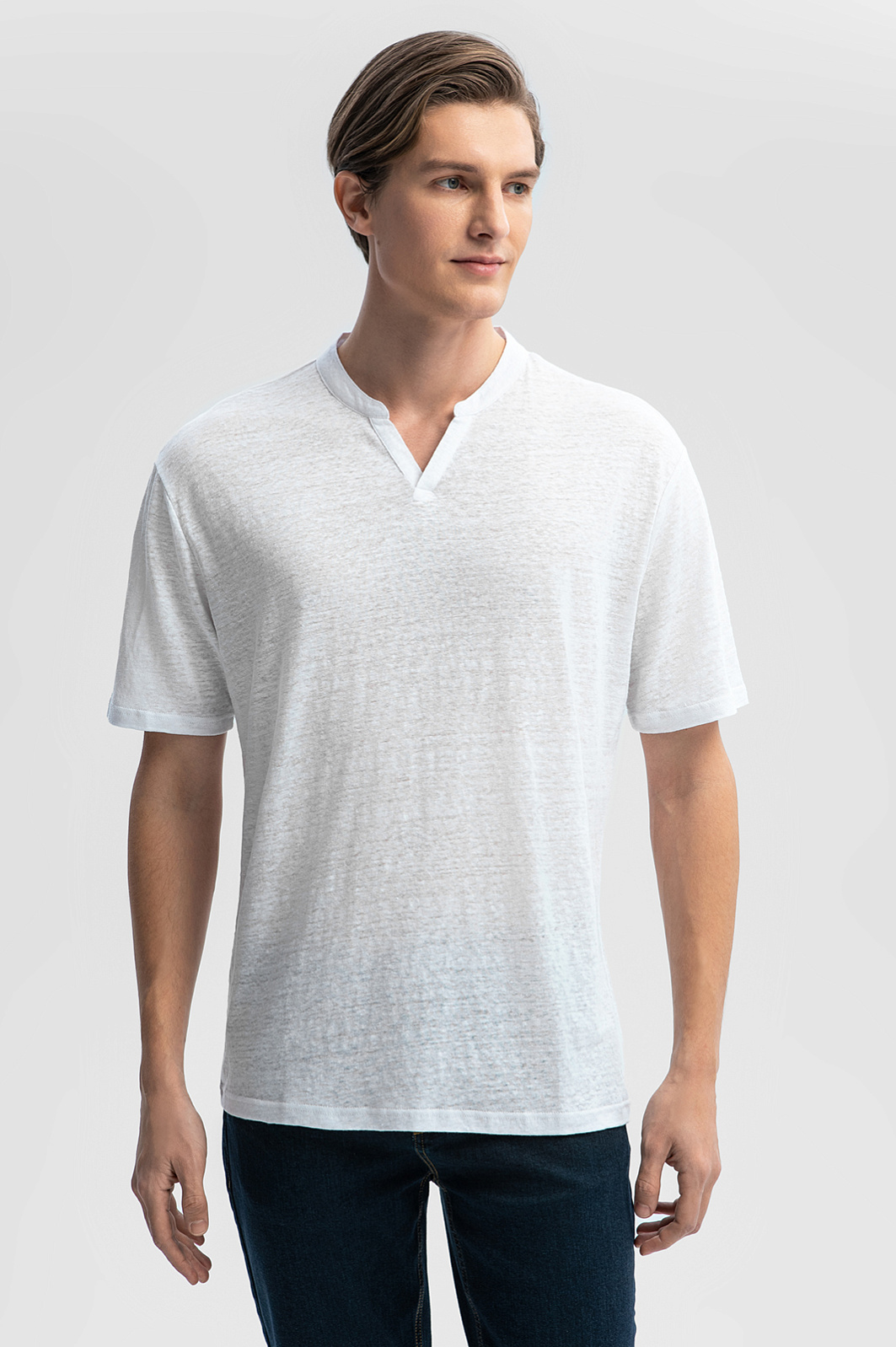 Белая льняная футболка из лимитированной коллекции создана для истинных ценителей комфорта и стиля. 100-процентный лён славится своей экологичностью и гипоаллергенными свойствами. Материал отлично впитывает влагу и быстро сохнет, поддерживая ощущение свежести и комфорта в течение всего дня. Прочная, но легкая ткань устойчива к образованию катышков и сохраняет безупречный вид даже после множества стирок. Белая футболка – это вечная классика, но воротник «мандарин» и Свободный крой придают модели нотку индивидуальности и расслабленности. Модель отлично сочетается с различными предметами гардероба – от джинсов до брюк или карго. Носите её с пиджаком для создания стильного офисного образа или комбинируйте с шортами для расслабленного стиля в выходной день.