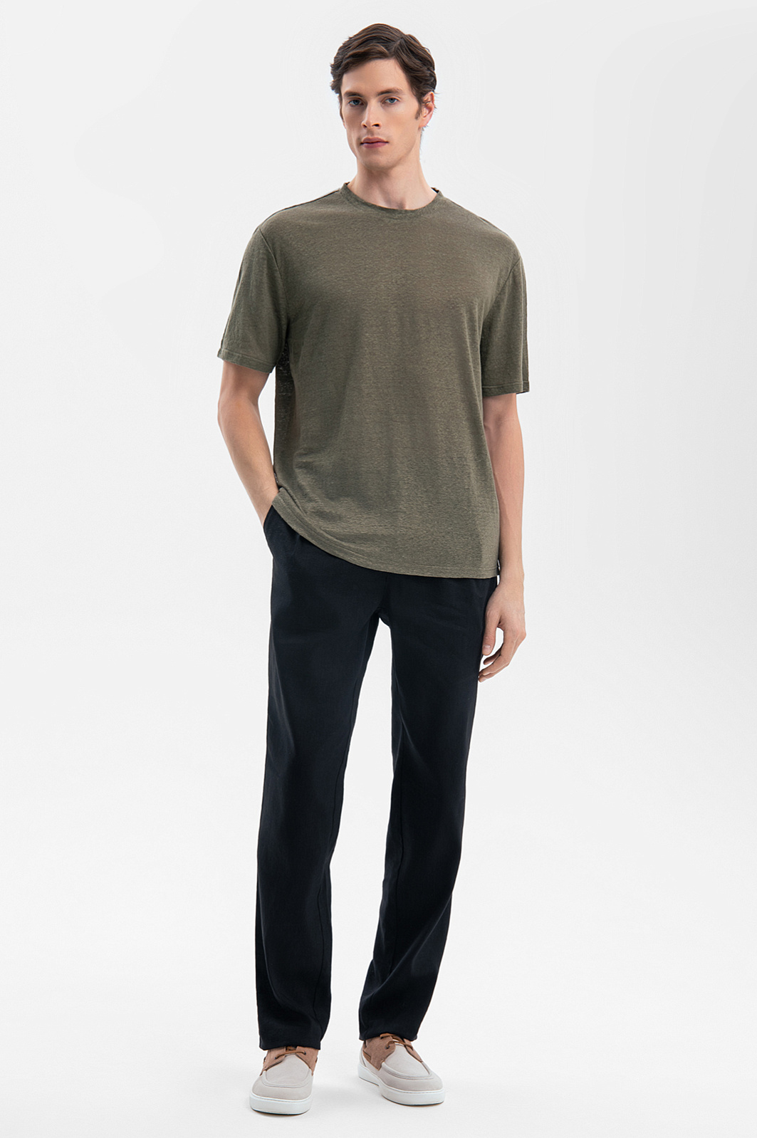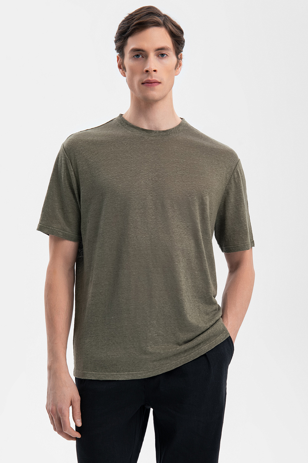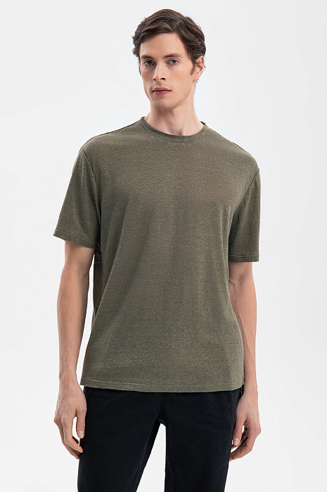 Футболка изо льна, цвет хаки, цена 5 990 руб., код 269252 - купить в Красноярске в интернет-магазине KANZLER