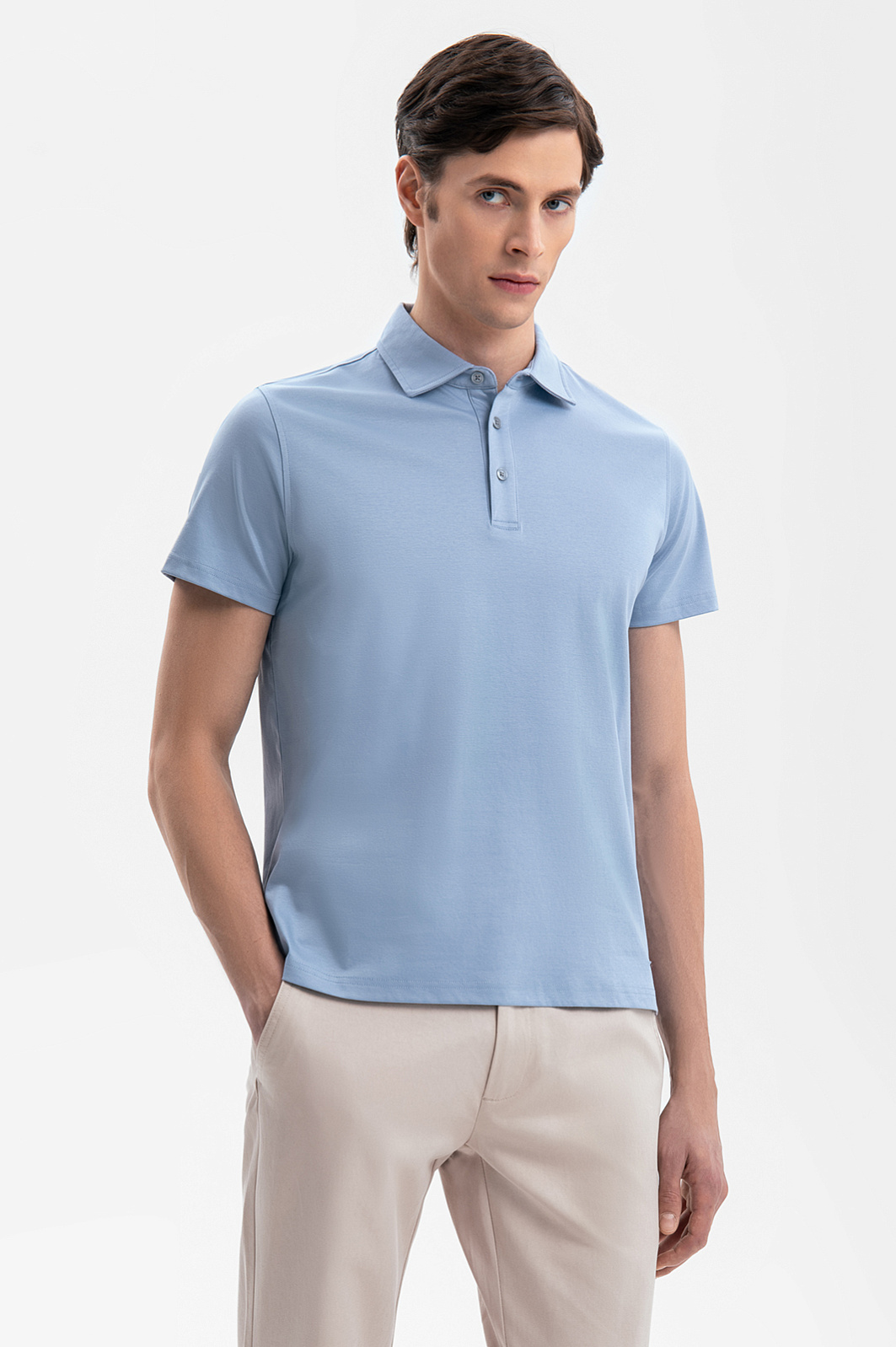 Поло из мерсеризованного хлопка, цвет голубой, цена 5 990 руб., код 269172 - купить в Красноярске в интернет-магазине KANZLER