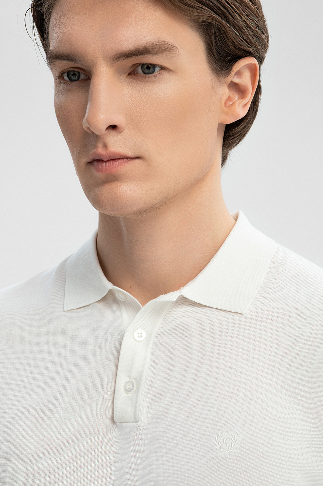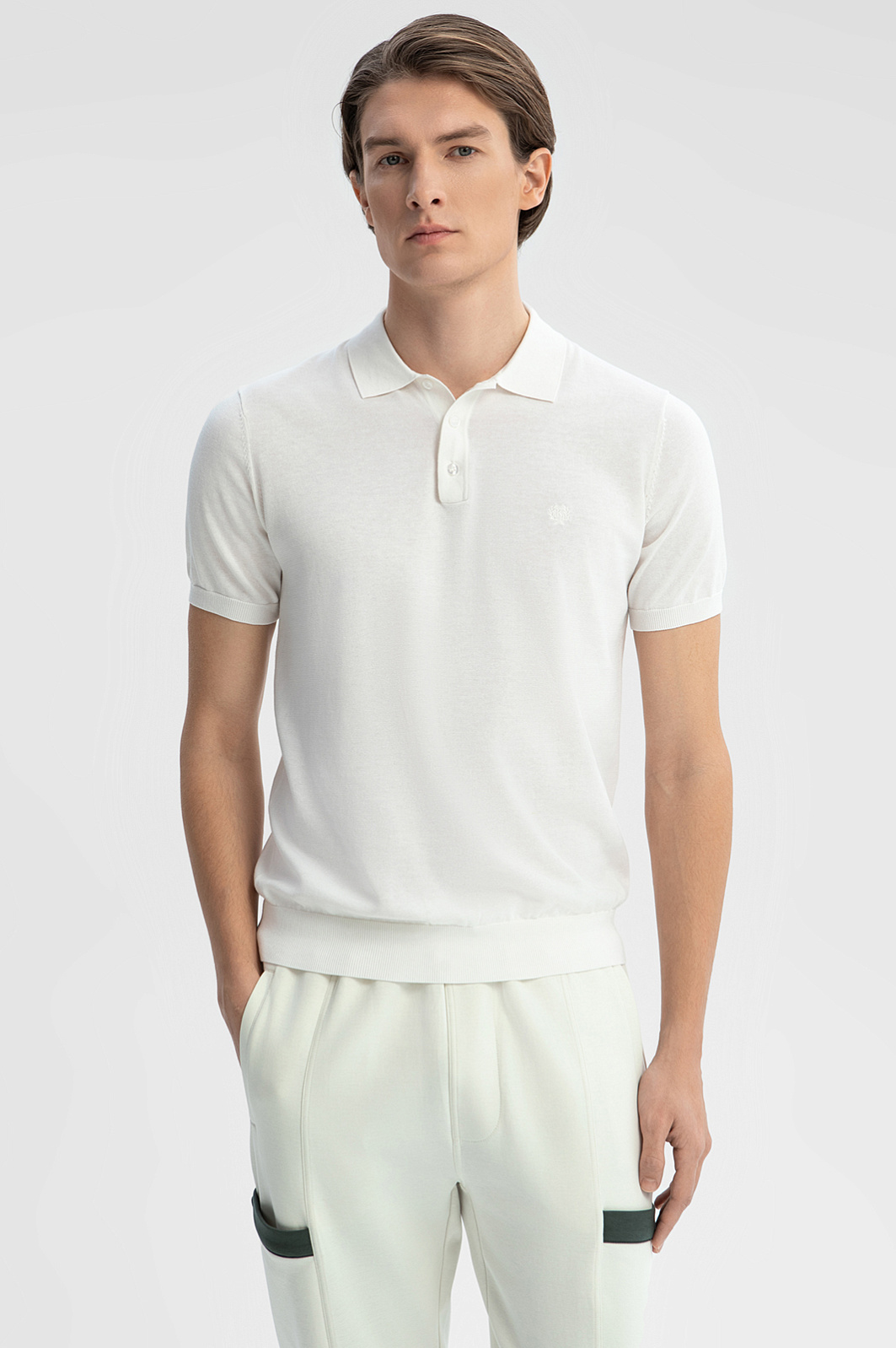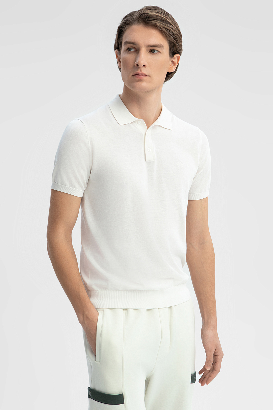 Поло из хлопка, шелка и льна, цвет белый, цена 7 990 руб., код 269194 - купить в Красноярске в интернет-магазине KANZLER