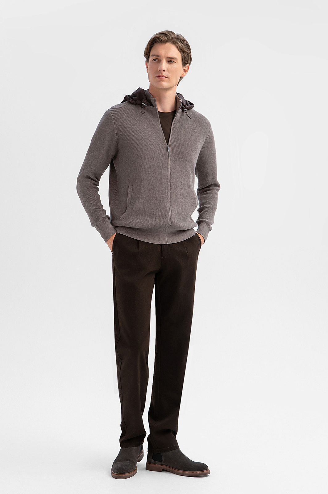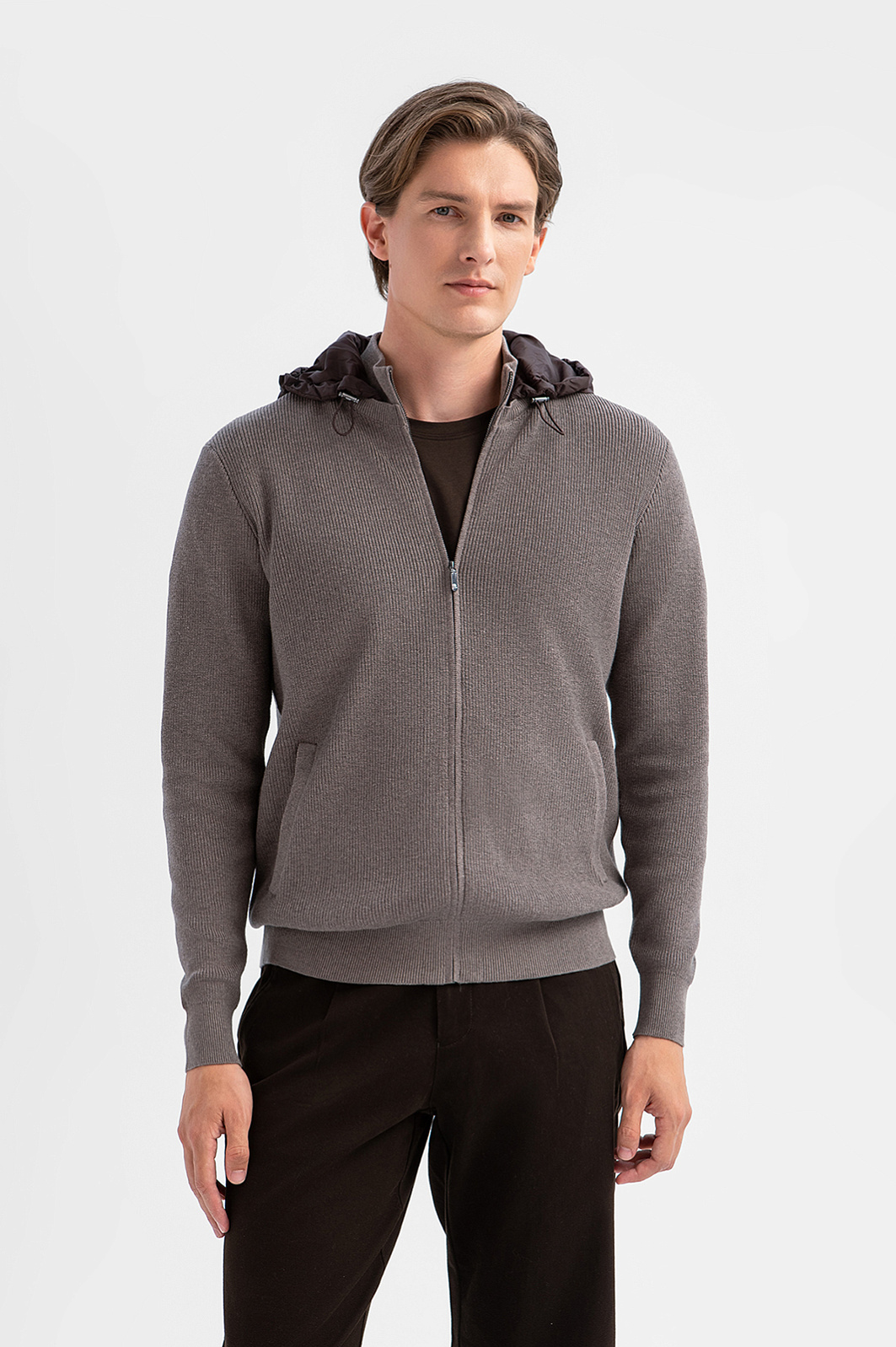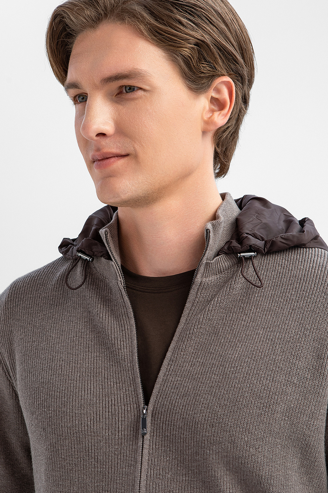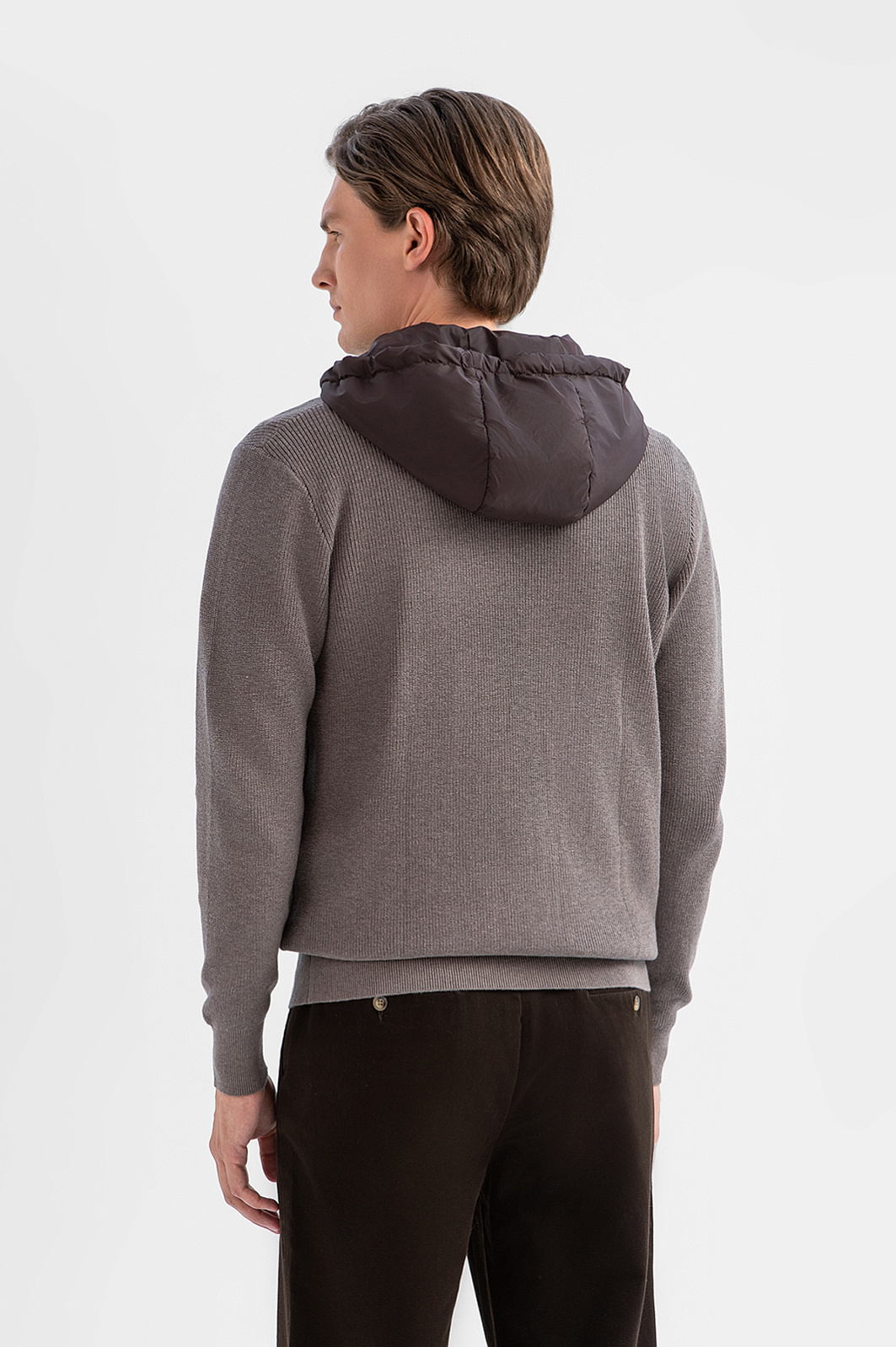 Кардиган KANZLER с капюшоном в изысканном оттенке из хлопка и кашемира — воплощение мужской элегантности в повседневном формате. Удобная универсальная модель будет незаменима в городской среде, на вечерней прогулке у моря и в поездке. Спортивный крой мягко очерчивает контуры фигуры, не ограничивая движений. Лёгкий капюшон из полиэстера с регулируемой резинкой защищает от ветра и дождя. Плотный, но мягкий трикотаж из хлопка с кашемиром — удачное сочетание натуральных гипоаллергенных волокон, которое обеспечивает телу свежесть, терморегуляцию и тактильное удовольствие. Параметры модели: рост 191, 97-77-99 Размер на модели: M