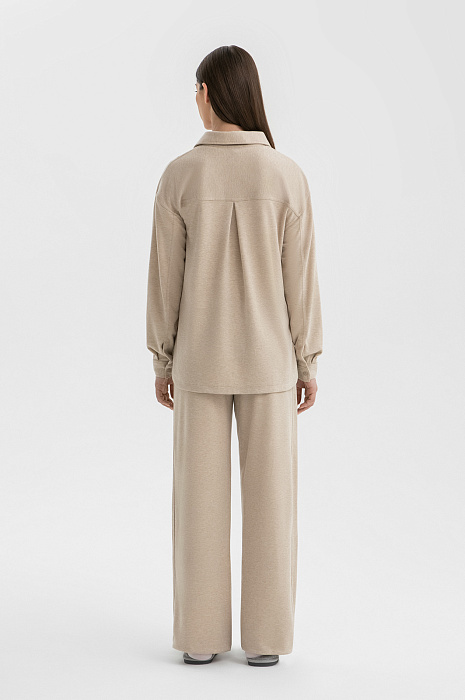 Пижамный комплект KANZLER приятного песочного оттенка предназначен для безмятежного отдыха и приятных домашних ритуалов — неизменной утренней чашки кофе, просмотра нового сериала или чтения. Костюм состоит из сорочки просторного кроя и слегка расширяющихся к низу брюк с лампасами. Смесовая ткань в мелкий рубчик мягко облегает тело, не стесняя движений. Материал сделан из технологичных волокон с добавлением натуральной шерсти. Полиэстер и акрил обеспечивают прочность и устойчивость к деформации, вискоза — воздухопроницаемость, полиамид — эластичность, а шерсть сохраняет естественное тепло.