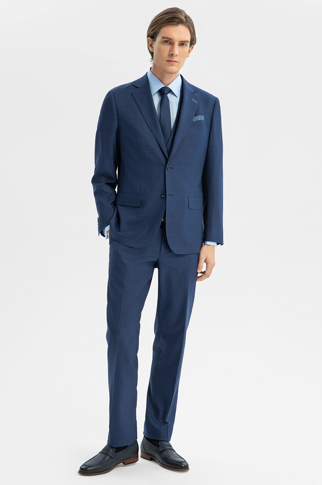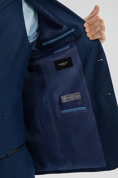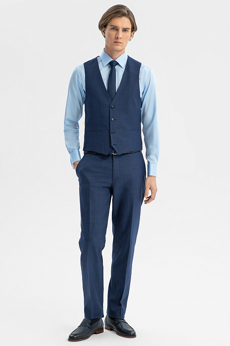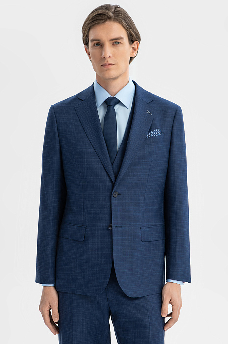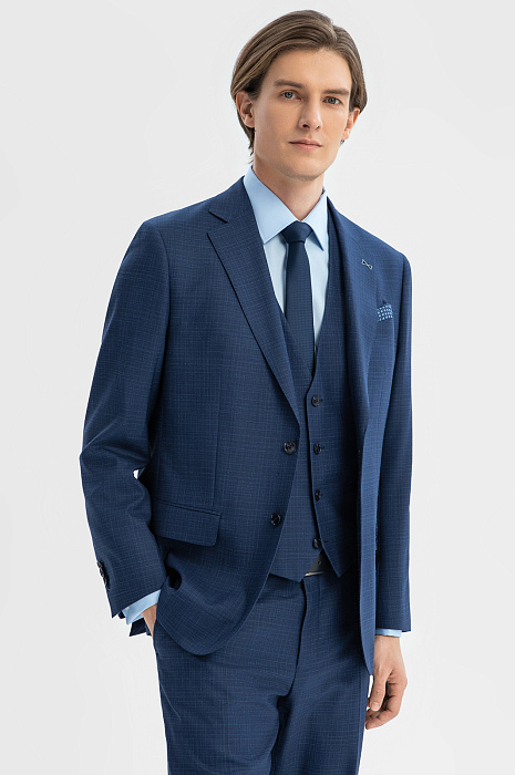 Костюм-тройка из шерсти, хлопка и льна с водоотталкивающей обработкой, цвет синий, цена 48 970 руб., код - купить в Красноярске в интернет-магазине KANZLER