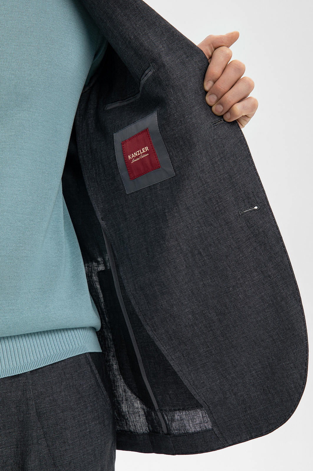 Роскошный темно-серый костюм KANZLER из лимитированной коллекции сочетает современные черты и высшую степень безупречного утонченного стиля, проверенного временем. Он сшит из дорогой льняной ткани, которую производит итальянская фамильная мануфактура Vitale Barberis, основанная более 360 лет назад. Облегченный пиджак прилегающего кроя с накладными карманами, пуговицами в тон и двумя шлицами сзади дополнен удобными умеренно свободными брюками с защипами. Красивая фактурная ткань изо льна (100%) идеально подходит для межсезонья и теплых дней. Натуральные гипоаллергенные волокна поддерживают циркуляцию воздуха и приятную для тела температуру.