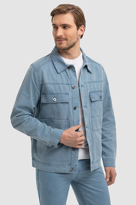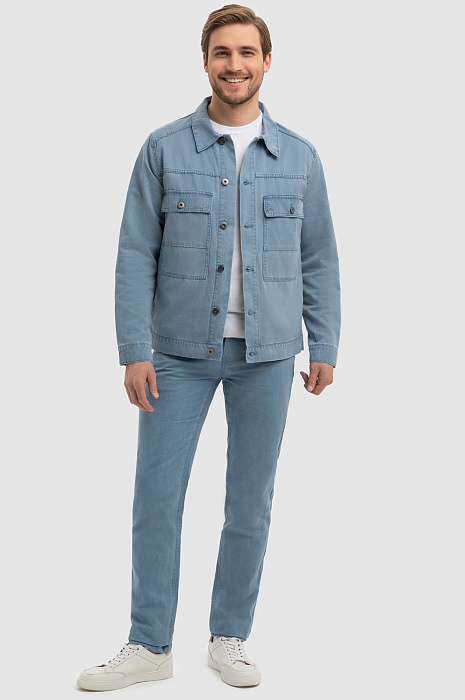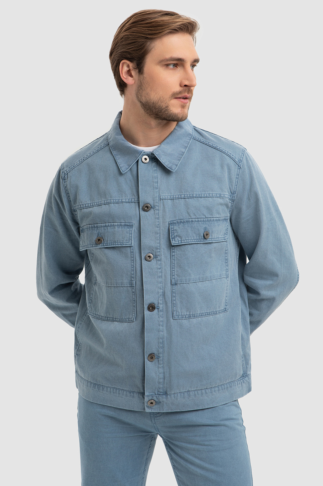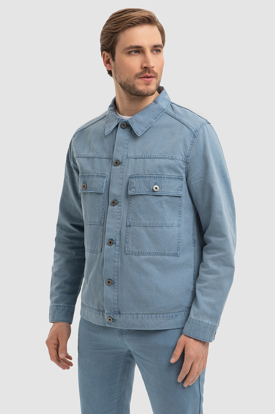 Куртка джинсовая с добавлением льна, цвет голубой, цена 7 990 руб., код 266725 - купить в Красноярске в интернет-магазине KANZLER