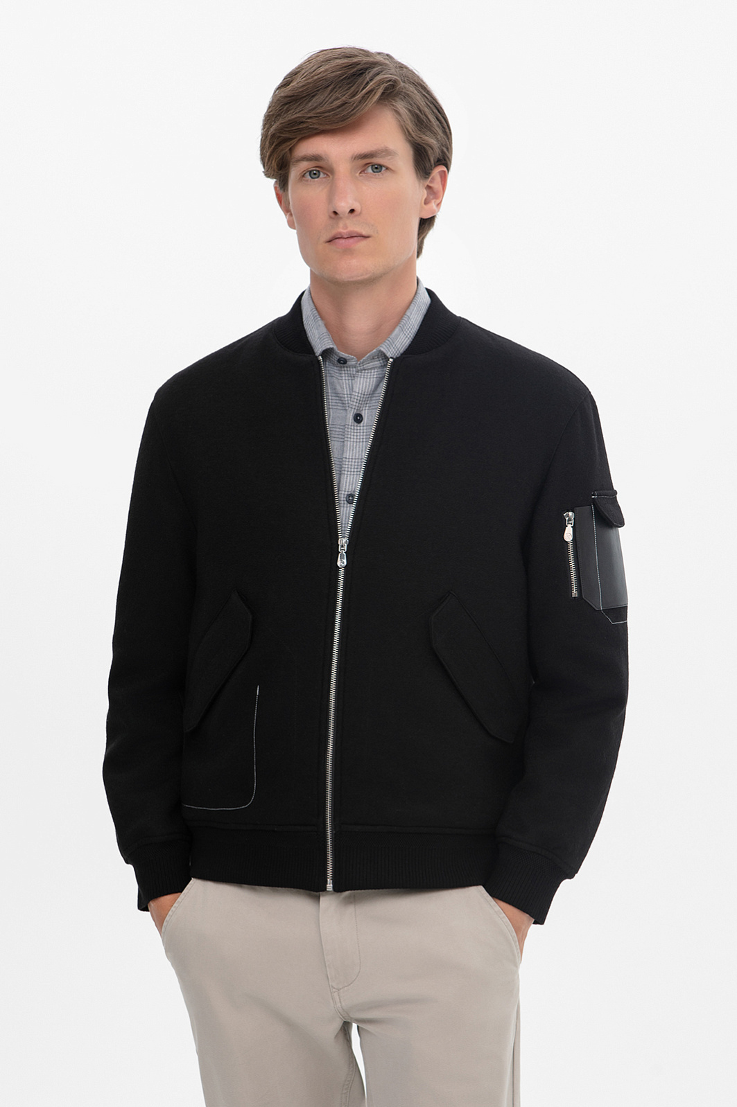Бомбер из смесовой шерсти, лимитированная коллекция, цвет черный, цена 19 990 руб., код 268224 - купить в Красноярске в интернет-магазине KANZLER
