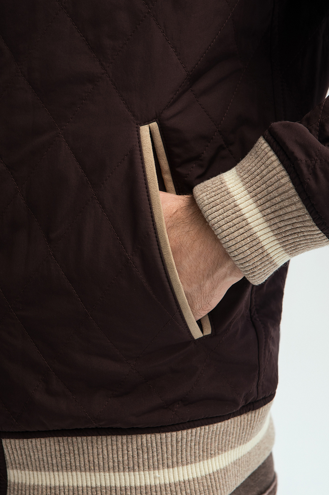 Роскошный двусторонний бомбер KANZLER — стильная, удобная и функциональная верхняя одежда из лимитированной коллекции, все модели которой отшиваются из дорогих изысканных тканей. Демисезонную куртку можно носить на обе стороны, руководствуясь настроением и погодными условиями. Одна сторона — серая, с бежевыми рукавами. Основная часть сшита 100-процентной шерсти итальянской мануфактуры Vitale Barberis Canonico, которая в 1663 году поставляла ткани для костюмов герцога Савойского, а пару лет назад отмечала свое 360-летие. Это немнущийся воздухопроницаемый материал, который поддерживает комфортную температуру и сохраняет тепло. Другая сторона куртки — стеганая, из прочной непродуваемой полиэстеровой ткани оттенка горького шоколада. Акцентными деталями служат бежевые с белой полосой фактурные трикотажные резинки снизу, на воротнике и манжетах. Параметры модели: рост 189, 102-80-99 Размер на модели: 50