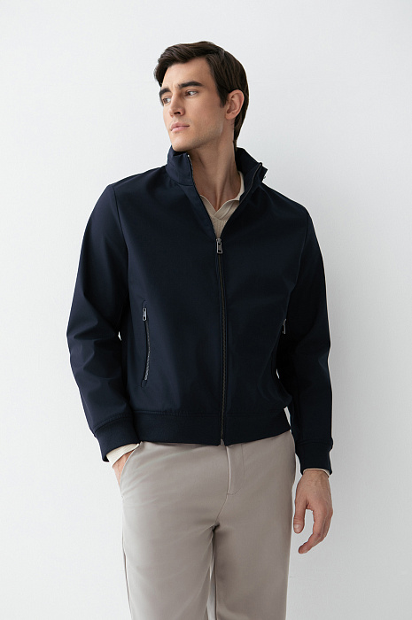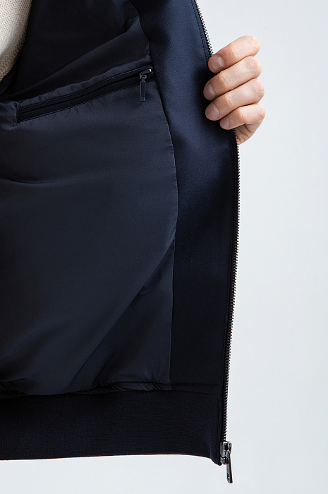 Стильная тёмно-синяя куртка KANZLER из смесовой шерсти с эластичными манжетами и прорезными карманами на молнии интерпретирует эстетику канонического бомбера. Это удобная современная модель, которая гармонично сочетается с повседневными брюками, джинсами и базовыми футболками. Детали функциональны: воротник-стойка и плотные трикотажные резинки на рукавах и по низу создают надёжный барьер от ветра. Специальная водоотталкивающая обработка позволяет материалу сохранять безупречный вид в сырую погоду. Тёплая смесовая ткань (натуральная шерсть с полиэстером) надёжно защищает от холода в межсезонье и прохладные дни.