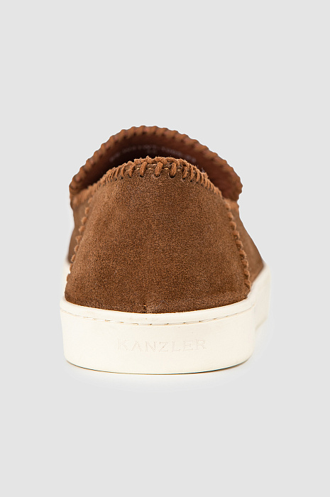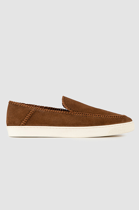 Коричневые лоферы KANZLER из замши с белой подошвой — лёгкая и удобная классическая обувь в современном исполнении. Лаконичная форма сочетается с оригинальной отделкой — декоративным краевым швом, который подчёркивает структуру обуви и привлекает внимание к деталям. Подкладка и стелька, выполненные из гладкой натуральной кожи, служат комфорту и избавляют ноги от усталости при длительной ходьбе. Утолщенная резиновая подошва амортизирует шаг.