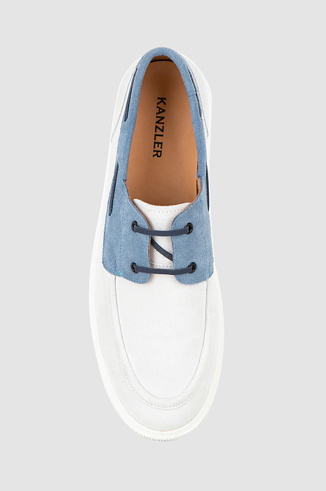 Топсайдеры KANZLER из замши — это классическая яхтенная обувь в новом лаконичном дизайне. Современная модель ассоциируется не только с морской романтикой, но и с эстетикой университетов Лиги плюща, известных своими высокими стандартами и богатой историей. В модели объединились практичность и утончённый стиль: нескользящая подошва из резины придаёт уверенность каждому шагу, а сочетание светло-серого и голубого оттенков добавляет образу лёгкость и изысканность. Верх обуви выполнен из мягкой натуральной замши, которая придаёт модели благородную фактуру и выразительный внешний вид. Подкладка и стельки из натуральной кожи служат комфорту для ног: поддерживают циркуляцию воздуха и снимают напряжение при ходьбе.