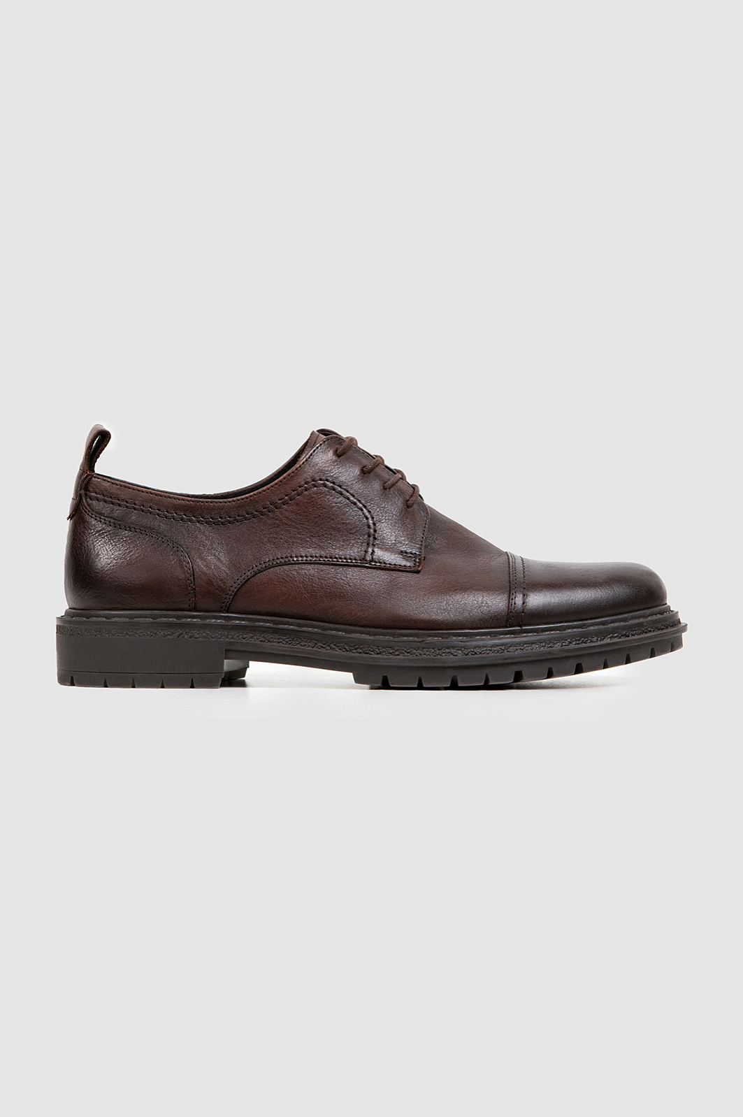 Коричневые кожаные полуботинки KANZLER с отрезным мыском — универсальная обувь в стиле кежуал, которая идеально сочетается с нестрогими костюмами, твидовыми пиджаками и неформальными брюками. Аккуратные швы, элегантная форма и благородный натуральный материал придают образу завершённость и делают пару идеальным выбором для городских прогулок и встреч. Верх, подкладка и стелька выполнены из гладкой кожи — натурального дышащего материала, который обеспечивает ногам комфорт в течение всего дня. Толстая рифлёная подошва из резины гарантирует устойчивость на разных покрытиях.