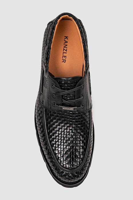 Черные топсайдеры KANZLER из натуральной кожи — роскошная версия классической яхтенной обуви, которая уже перестала быть привилегией яхтсменов и предназначена для расслабленных уикендов и неформальных выходов в бар, кафе, клуб, кинотеатр, на экскурсию или просто прогулку. Модель сохраняет основные традиционные детали — шов на мыске, кожаный шнурок, протянутый вокруг задника и устойчивую нескользящую рифленую подошву. Кожаный верх придаёт топсайдерам выразительность и шик. Чёрный цвет делает обувь универсальной и подходящей практически к любой одежде в стиле кежуал и умный кежуал.