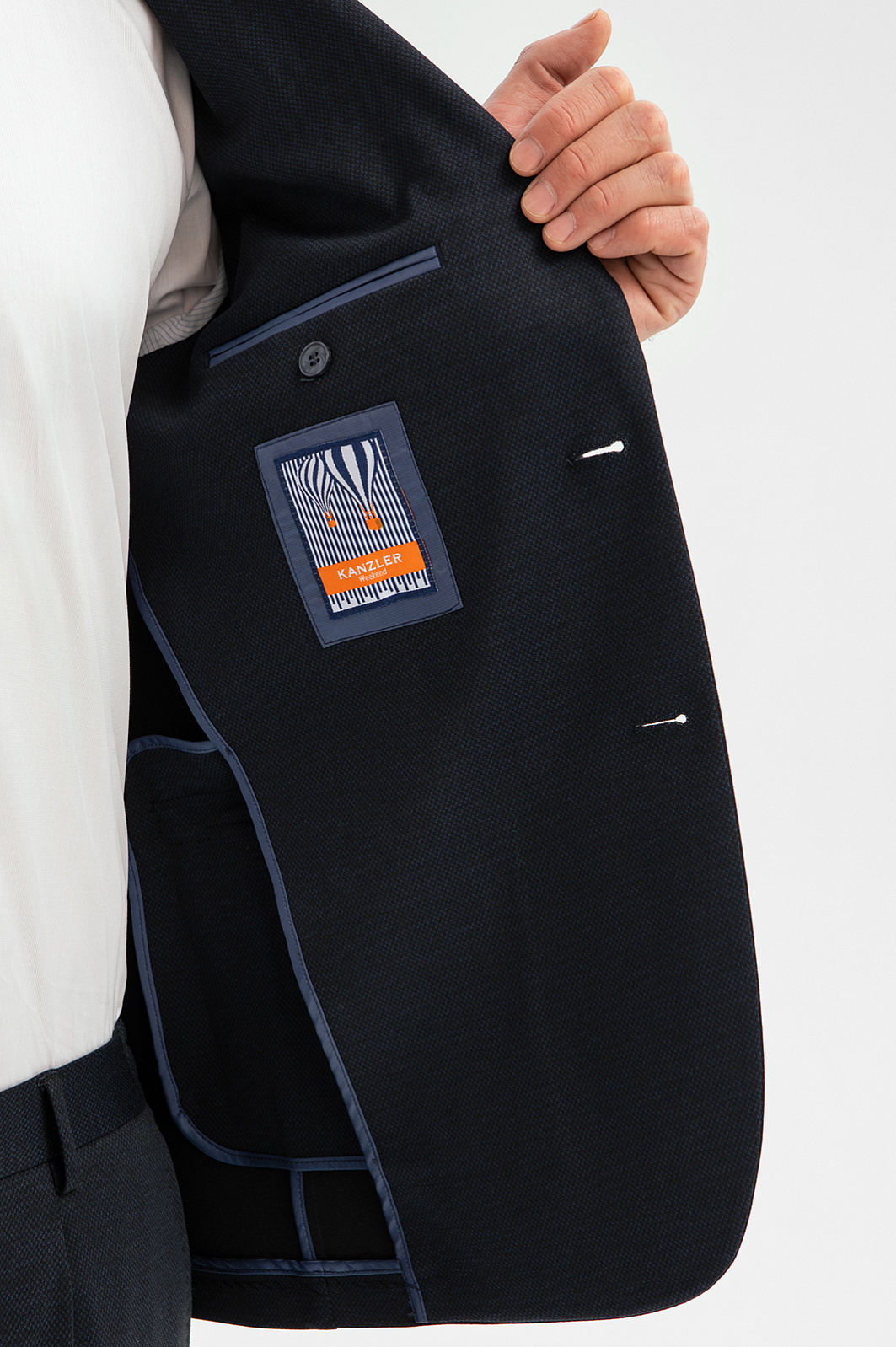 Элегантный однобортный пиджак KANZLER благородного темно-синего цвета уместен в любой ситуации, будь то работа, деловая поездка или отдых. Удлиненные лацканы и слегка приталенный Приталенный крой стройнят фигуру и добавляют элегантности. Детали кроя — две шлицы сзади, нагрудный карман с листочкой и нижние карманы с клапанами — соответствуют классическим канонам. А общая конструкция сделана в облегченном варианте, без подкладки. Высокотехнологичная прочная смесовая ткань состоит из трех видов волокон. Она отлично держит форму, не сминается и не боится загрязнений. Параметры модели: рост 189, 102-80-99 Размер на модели: 50