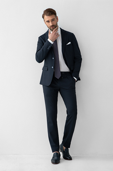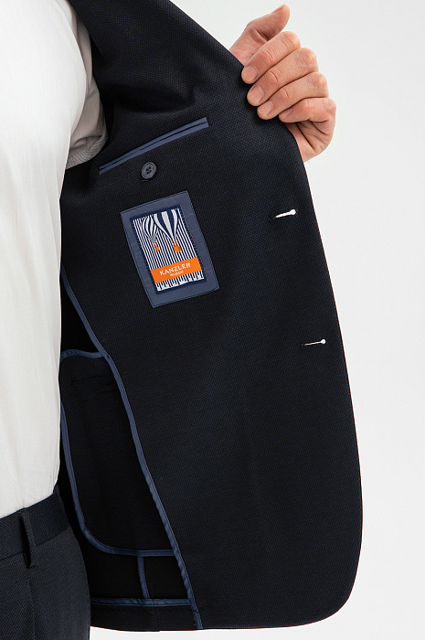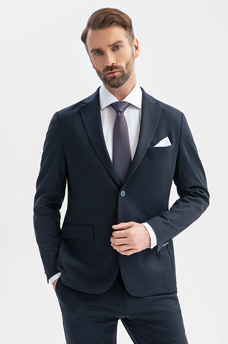 Пиджак однобортный из трикотажной ткани, цвет синий, цена 21 990 руб., код 269098 - купить в Красноярске в интернет-магазине KANZLER