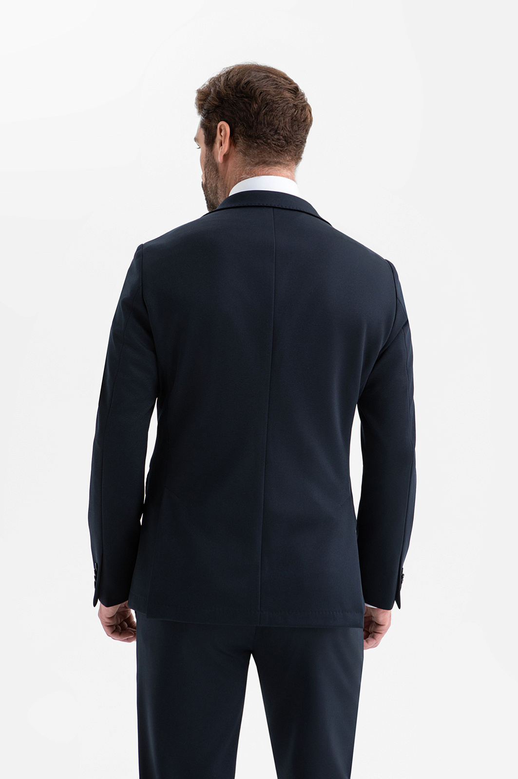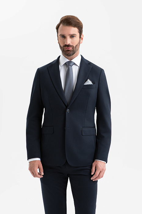 Пиджак KANZLER спокойного синего оттенка слегка прилегающего силуэта — выверенный баланс традиций и инноваций. Облегчённая конструкция без подкладки делает модель современной и комфортной. Чёткая линия плеча придаёт образу собранность и мужественность. Аккуратная портновская строчка по краю лацканов, нагрудный карман с листочкой и нижние карманы с клапанами подтверждают вневременной классический стиль пиджака. Практичное технологичное полотно произведено из полиэстера с добавлением спандекса. Сочетание современных волокон делает ткань устойчивой к сминанию и обеспечивает свободу движений для жизни в городском ритме. Параметры модели: рост 189, 102-80-99 Размер на модели: 50