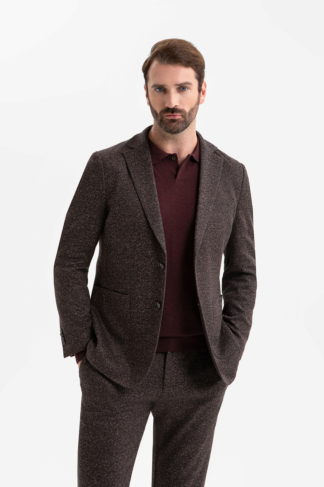 Пиджак KANZLER благородного коричневого оттенка с меланжевым эффектом создан для мужчины, который выбирает элегантность без лишней строгости. Он одинаково подойдёт для офиса и неформальной дружеской встречи. Слегка приталенный крой подчеркивает фигуру. Облегчённая конструкция без подкладки делает модель удобной, а две шлицы сзади обеспечивают свободу движений. Аккуратные накладные карманы не утяжеляют силуэт и добавляют непринуждённости. Инновационная ткань, созданная из современных синтетических и натуральных волокон, держит форму и адаптируется к индивидуальным особенностям фигуры. Добавление хлопка позволяет ткани хорошо пропускать воздух. Параметры модели: рост 189, 102-80-99 Размер на модели: 50