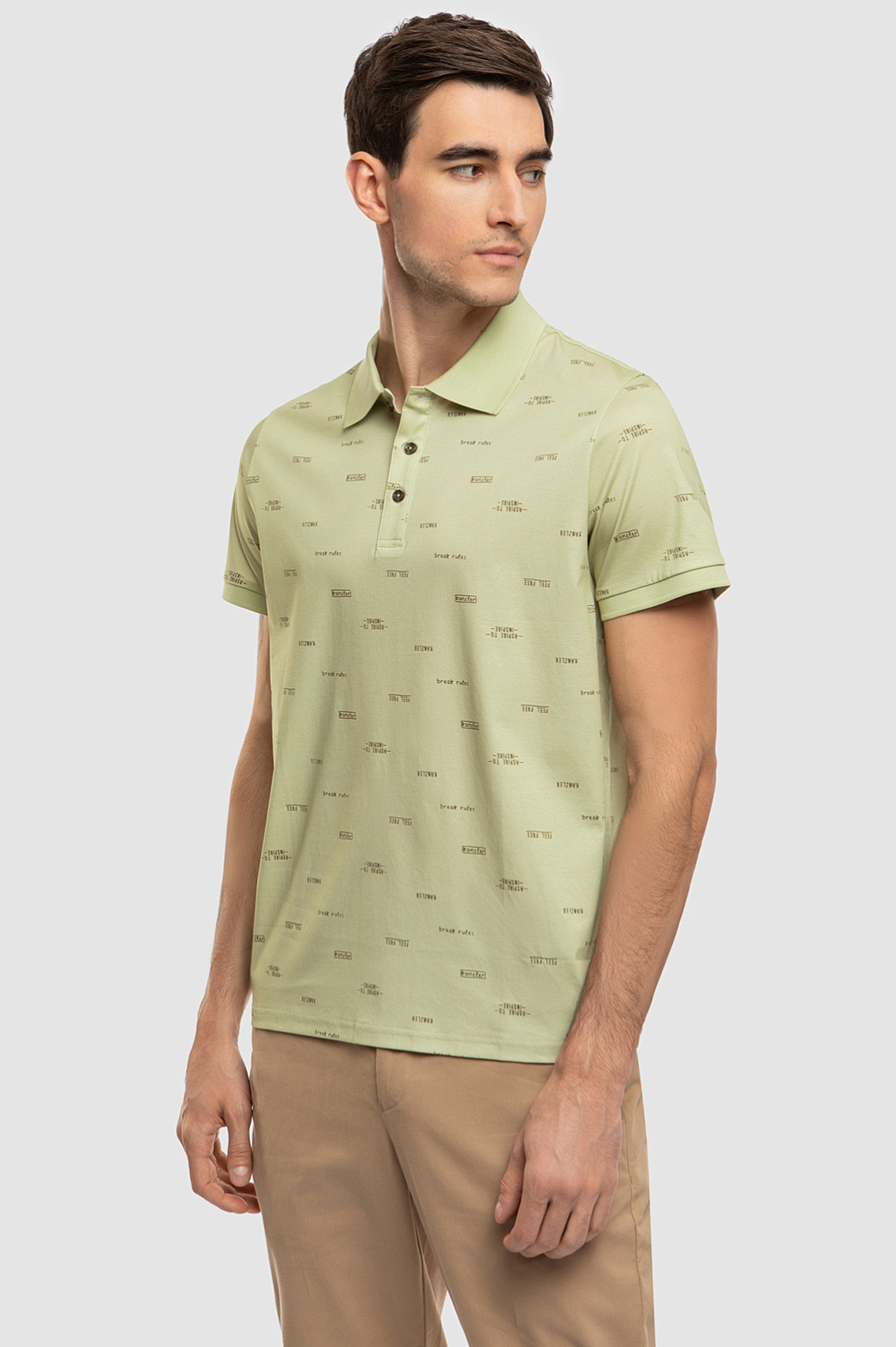 Поло KANZLER из хлопка в спокойном и изысканном оливковом оттенке. Природная гамма является неизменным трендом и выгодно подчеркивает достоинства внешности. Гипоаллергенный материал из натурального 100-процентного хлопка дарит ощущение легкости и свободы, позволяя коже дышать и сохраняя ощущение свежести даже в самый жаркий день. Узор из небольших надписей призывает нарушать правила, ощущать дух свободы и стремиться вдохновлять. Идеальным дополнением к поло станут брюки в натуральных оттенках и кожаные кеды. Параметры модели: рост 192, 101-76-97 Размер на модели: M