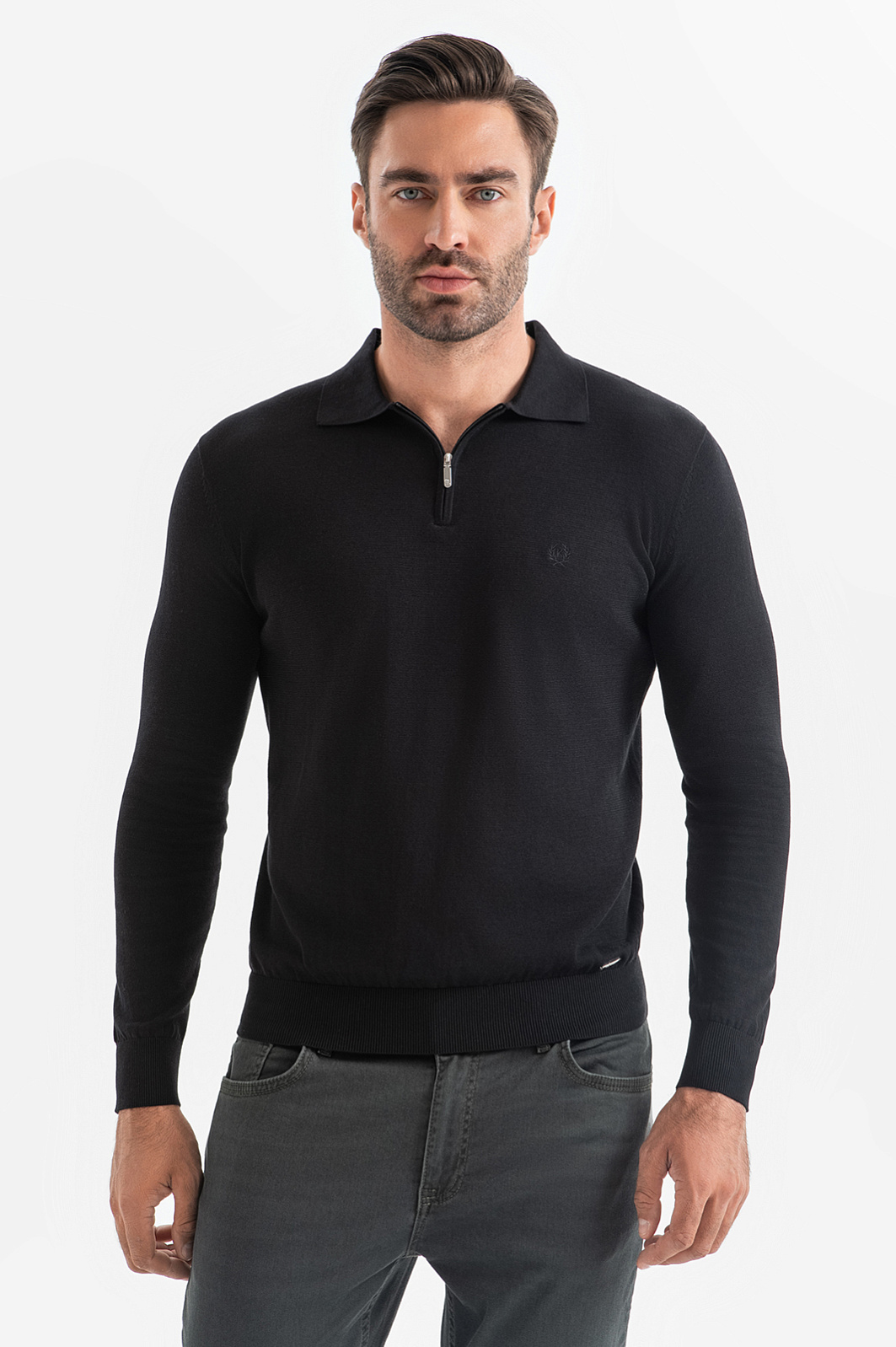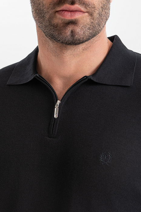 Поло из хлопка, шелка и льна, цвет черный, цена 8 990 руб., код 268132 - купить в Красноярске в интернет-магазине KANZLER