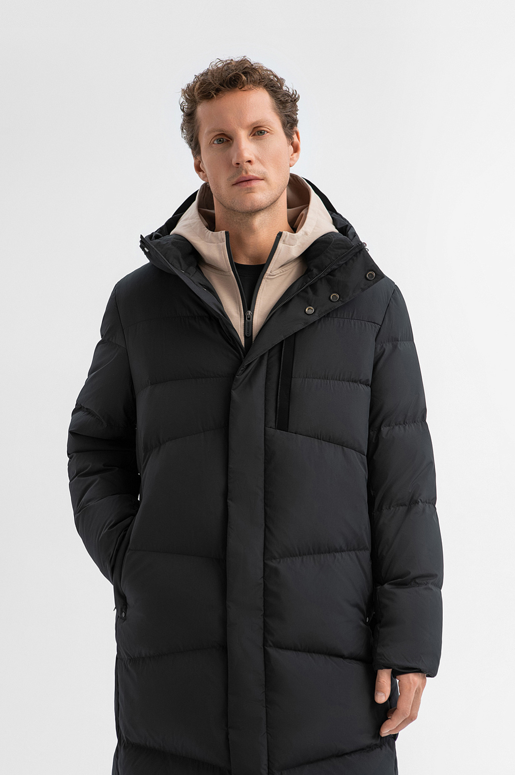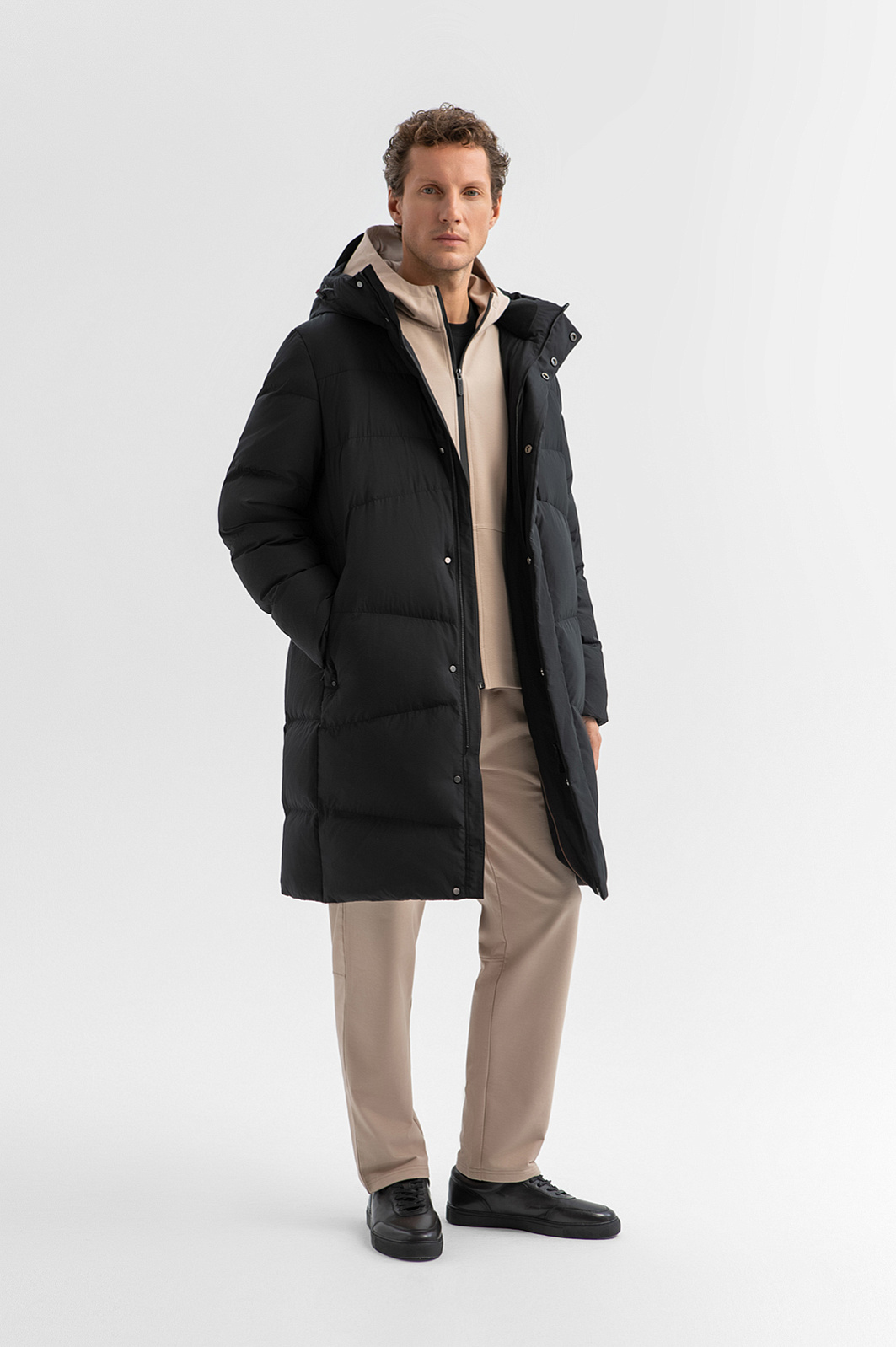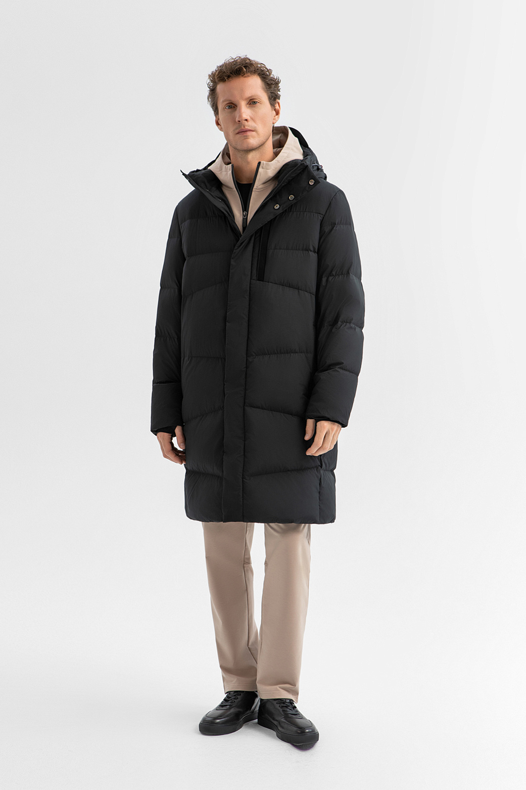 Чёрный удлинённый пуховик KANZLER с капюшоном — идеальный выбор для зимы, когда важны и стиль, и тепло. Модель отличают универсальный дизайн и продуманная функциональность. От ветра и снега надёжно защищает высокий воротник с капюшоном. Застёжка-молния с клапаном на скрытых кнопках создаёт полную изоляцию от холода. Эластичные манжеты с отверстием для большого пальца обеспечивают удобную посадку при активных движениях. Утеплённые боковые карманы согревают руки. Внутренний и нагрудный карман с вертикальной молнией сохраняют важные мелочи во время прогулки. Верхняя ткань (прочный износоустойчивый полиэстер) с водоотталкивающим эффектом не боится влаги. Наполнитель из 80% пуха и 20% пера делает пуховик лёгким, но при этом невероятно тёплым. Комфорт гарантирован даже при морозах до –30°C. Параметры модели: рост 188, 97-82-92 Размер на модели: 50