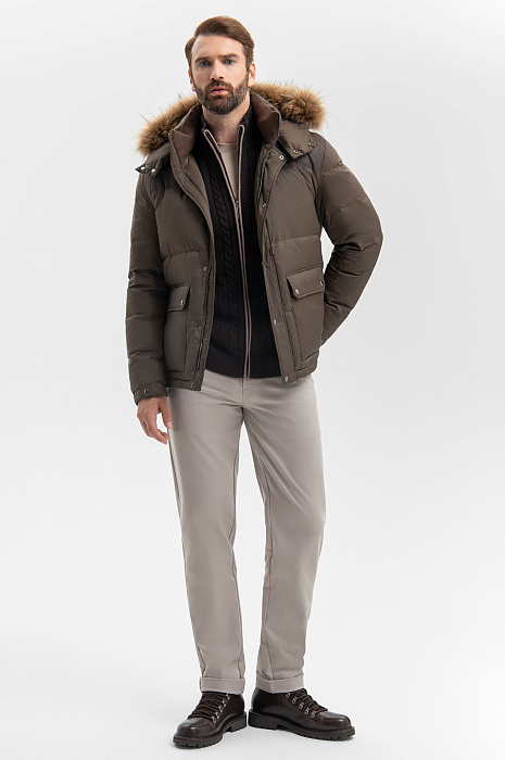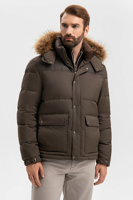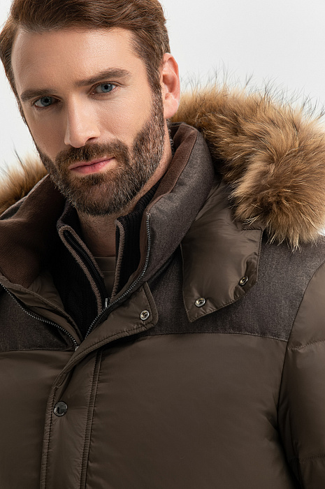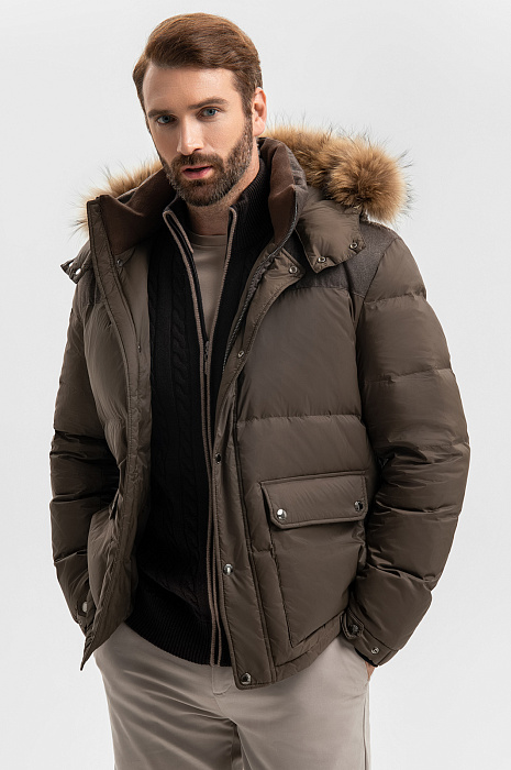 Пуховик с натуральным мехом, цвет хаки, цена 29 990 руб., код 270059 - купить в Красноярске в интернет-магазине KANZLER