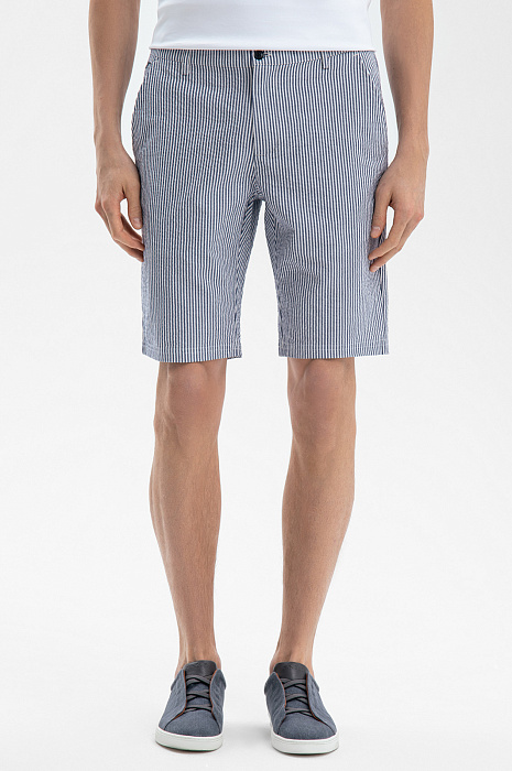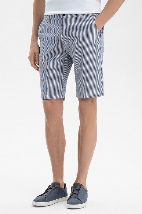 Бермуды из хлопка и льна в полоску, цвет синий, цена 8 990 руб., код 269097 - купить в Красноярске в интернет-магазине KANZLER