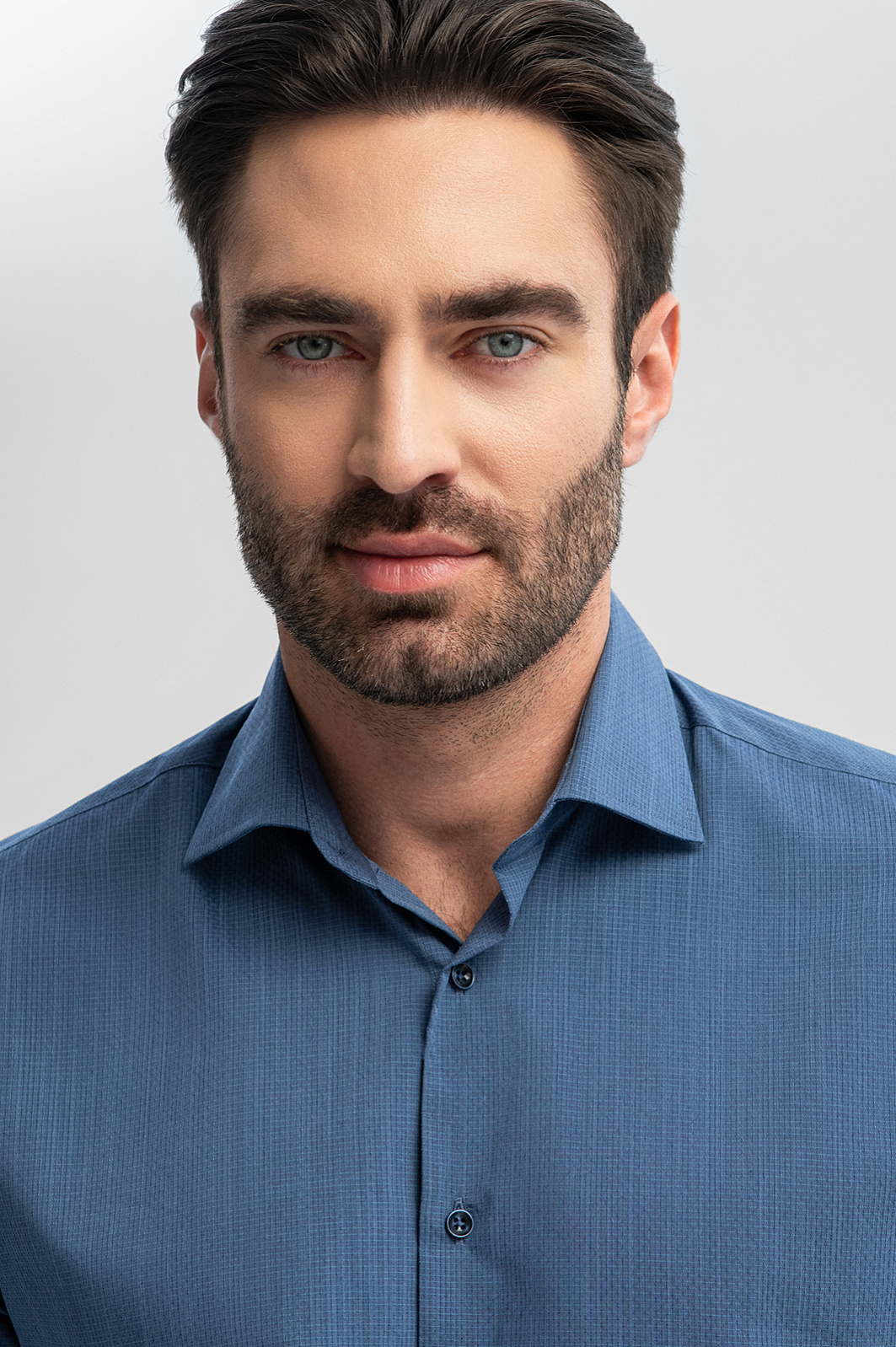 Глубокий сине-голубой оттенок и мягкий натуральный хлопок – стильная сорочка KANZLER создает безмятежное настроение, куда бы вы ни отправились: на деловую встречу, прогулку или вечернее мероприятие. Ткань из 100% хлопка дышит, мгновенно впитывает влагу и сохраняет комфорт даже в жаркий день. Гипоаллергенный материал безопасен для чувствительной кожи. Узор в мелкую клетку добавляет образу глубину и динамику. Умеренно свободный силуэт мягко облегает тело, не стесняя движений и сохраняя аккуратную посадку. Носите сорочку с бежевыми брюками и замшевыми лоферами, сочетайте с темно-синими джинсами и кожаными кедами или классическими брюками и оксфордами. Параметры модели: рост 192, 108-83-102 Размер на модели: 42