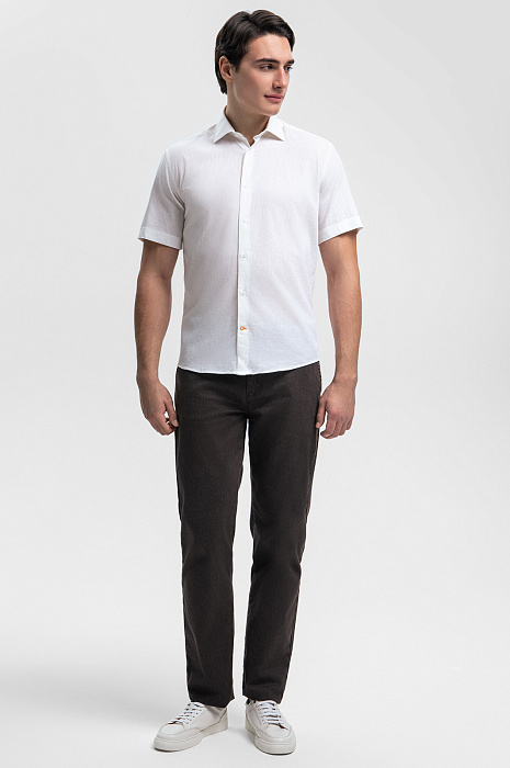 Белоснежный цвет, лаконичный дизайн и короткий рукав делают сорочку KANZLER идеальным выбором для теплого времени года. Премиальный материал от Getzner, австрийского производителя с более чем 200-летней историей, сочетает натуральные волокна льна и хлопка. Идеально сбалансированный состав обеспечивает мягкость, легкость, прочность и терморегуляцию, даря ощущение комфорта на протяжении всего дня. Белый цвет универсален и создаст свежий образ для любой обстановки: в офисе, на деловой встрече или прогулке у моря. Благодаря универсальному крою модель легко встроить в официальные и повседневные образы, комбинируя ее с брюками, джинсами или шортами. Параметры модели: рост 190, 103-83-99 Размер на модели: M