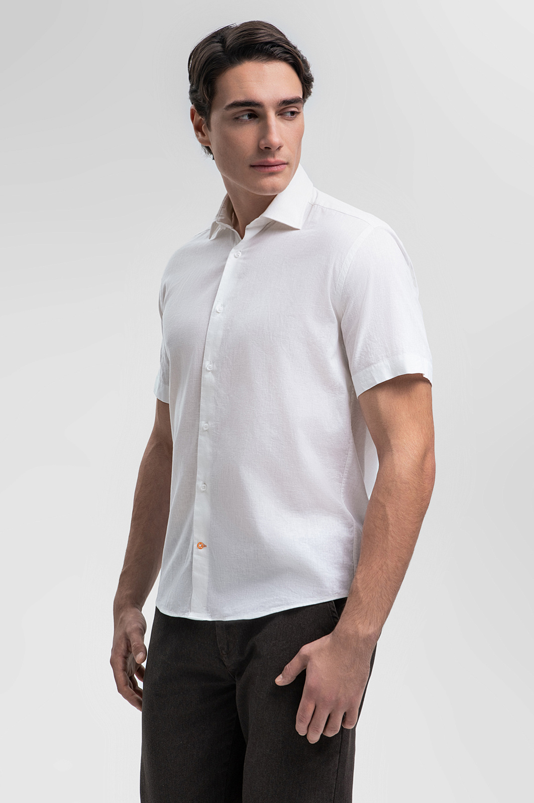 Сорочка с коротким рукавом из австрийской ткани Getzner, цвет белый, цена 6 990 руб., код 269336 - купить в Красноярске в интернет-магазине KANZLER