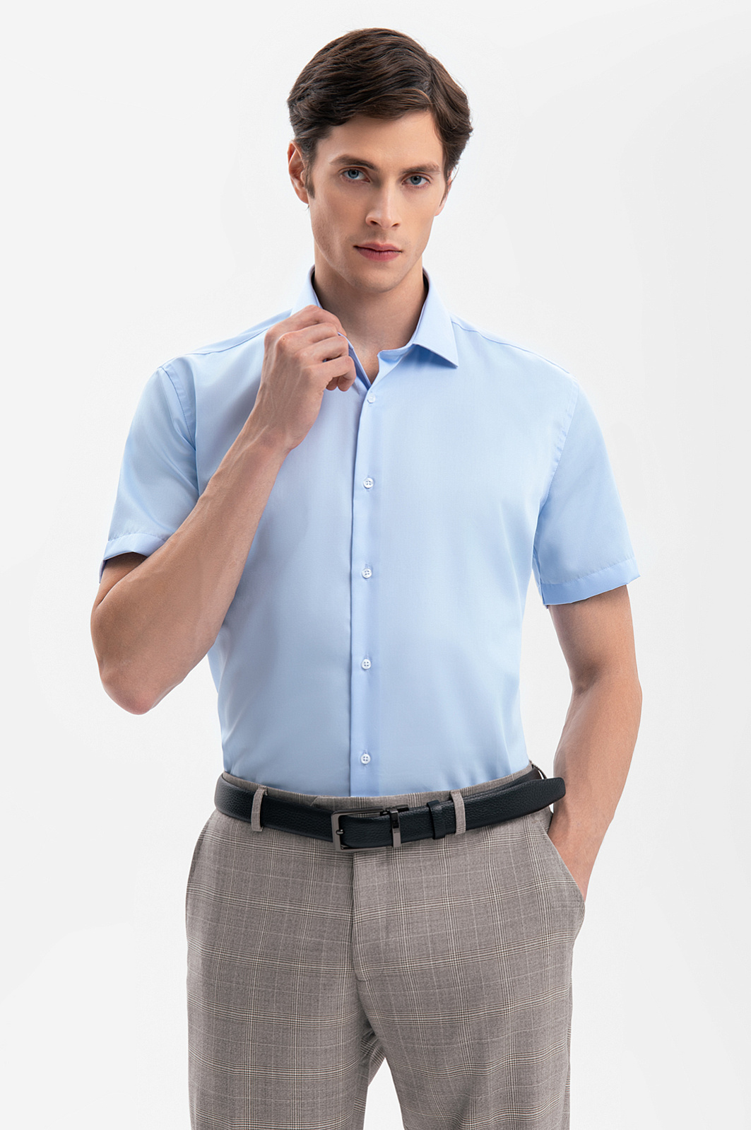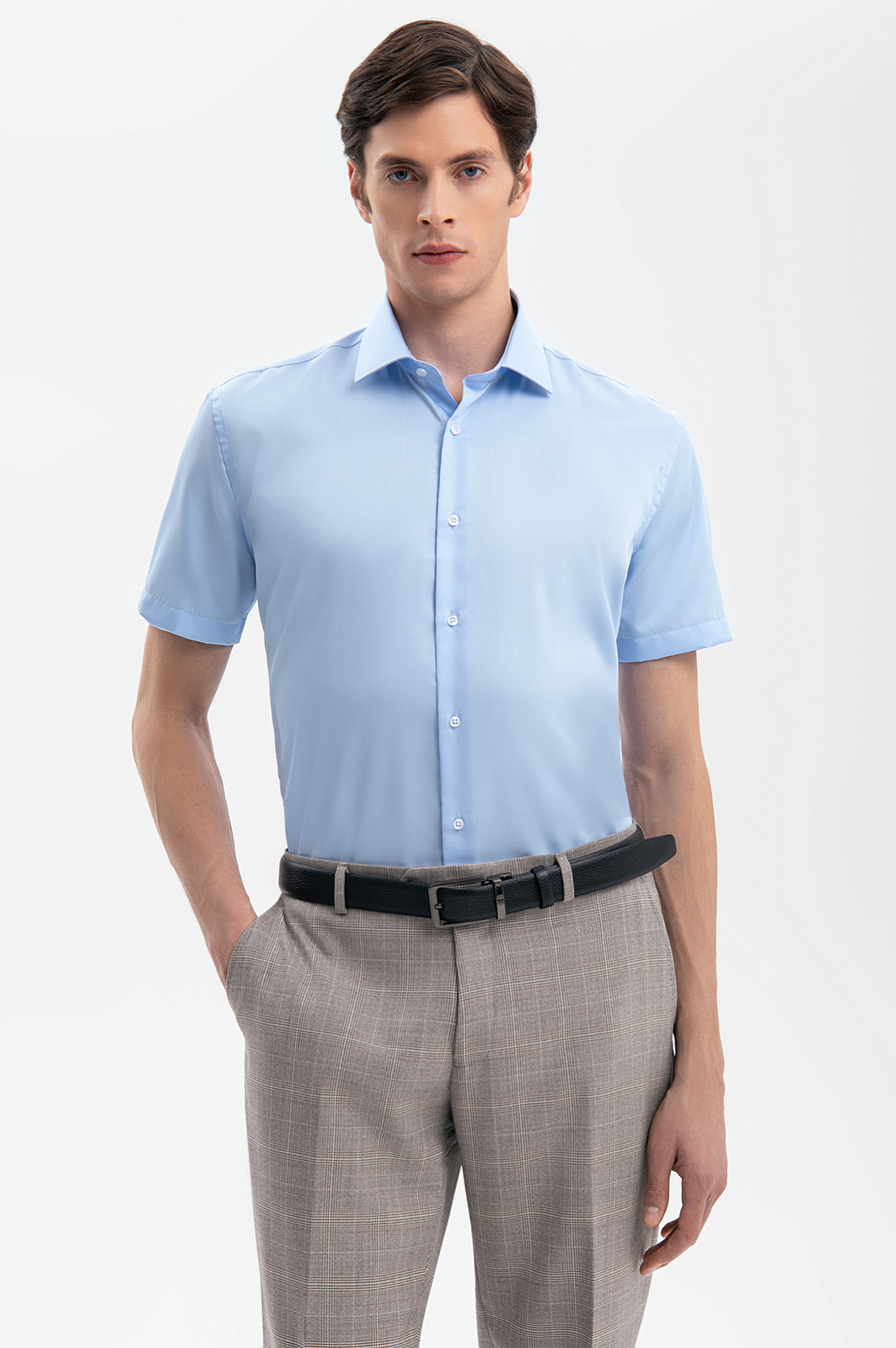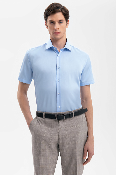 Сорочка с коротким рукавом из хлопка, устойчивая к сминанию, цвет голубой, цена 6 990 руб., код 269349 - купить в Красноярске в интернет-магазине KANZLER