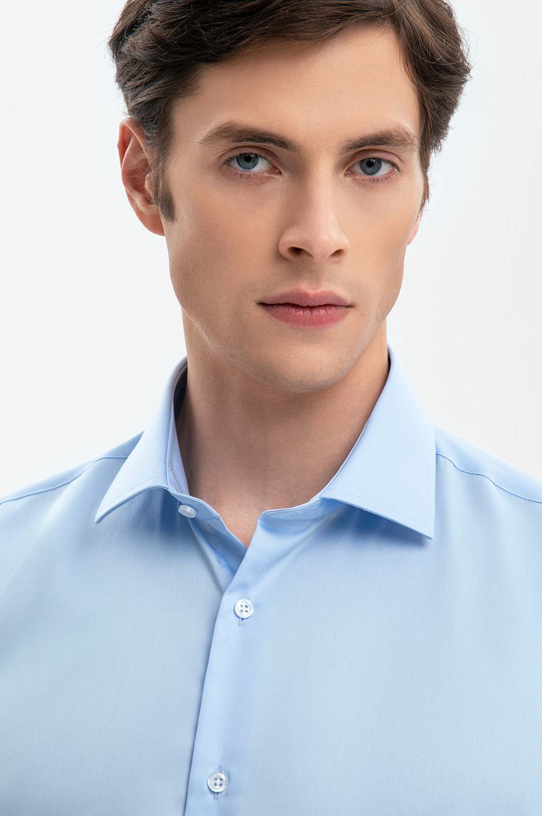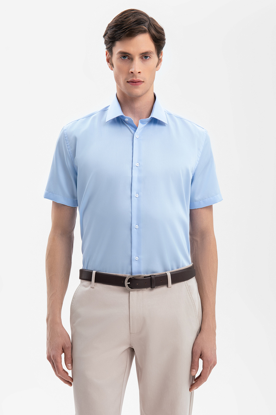Сорочка с коротким рукавом из хлопка, устойчивая к сминанию, цвет голубой, цена 5 592 руб., код 269350 - купить в Красноярске в интернет-магазине KANZLER